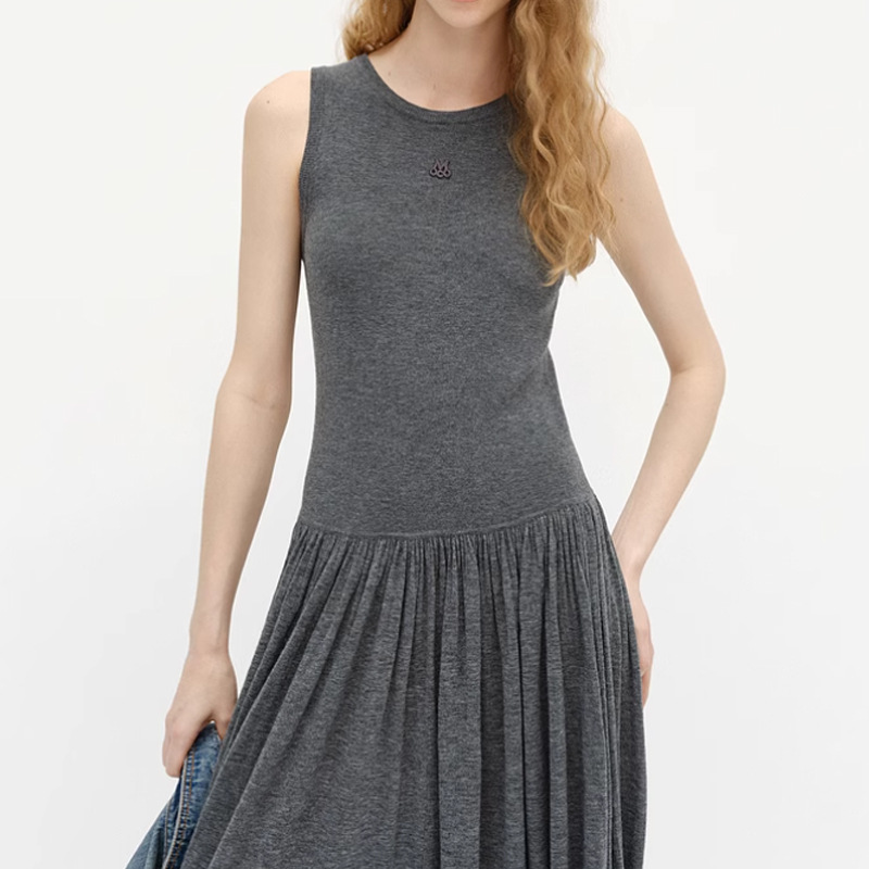 2025夏季新款高比例细支绵羊毛低腰针织长裙长款背心无袖连衣裙女