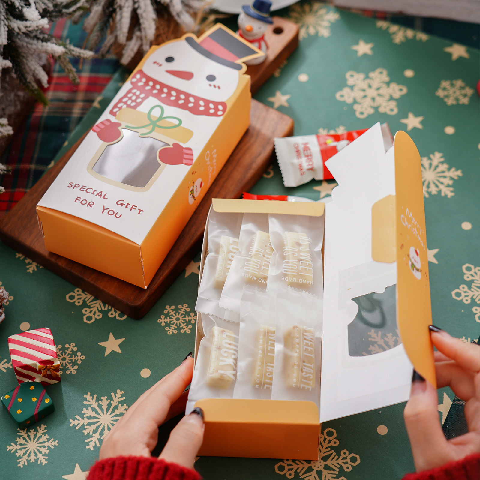 2025圣诞节开窗牛轧糖果雪花酥包装盒子烘焙曲奇饼干糯米船礼品盒