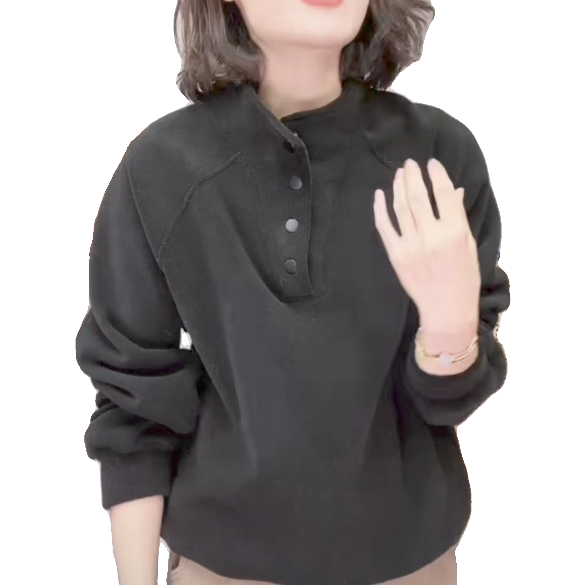 2025冬季新款时尚加绒加厚保暖澳粒绒卫衣套头单排扣女士打底衫