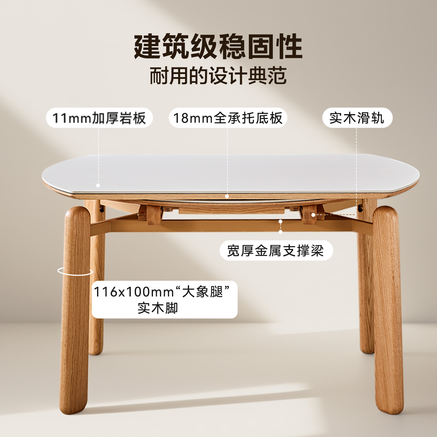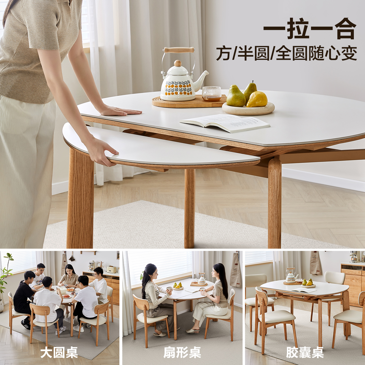 全友家居原木风伸缩岩板餐桌可变圆桌2025新款家用实木腿饭桌椅子