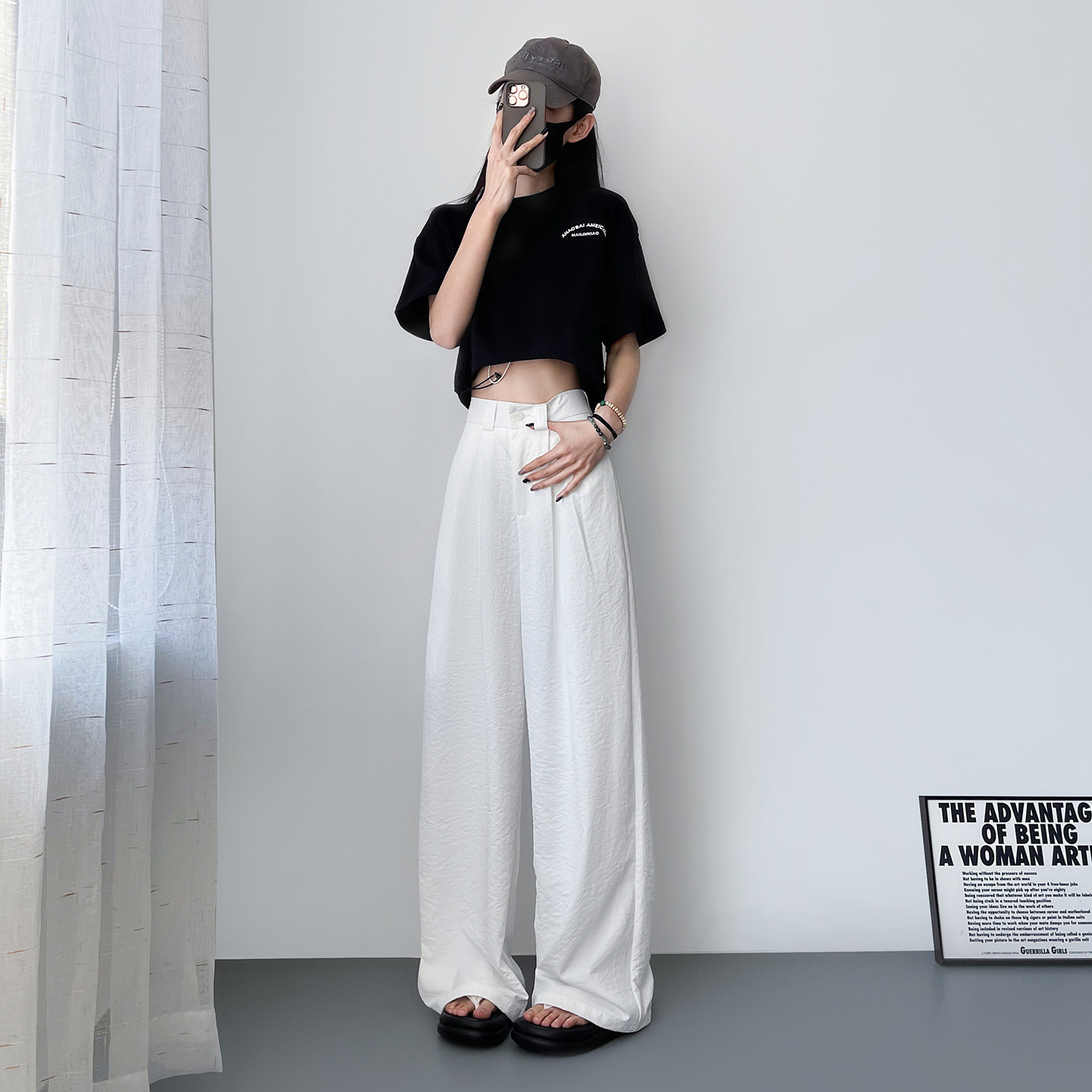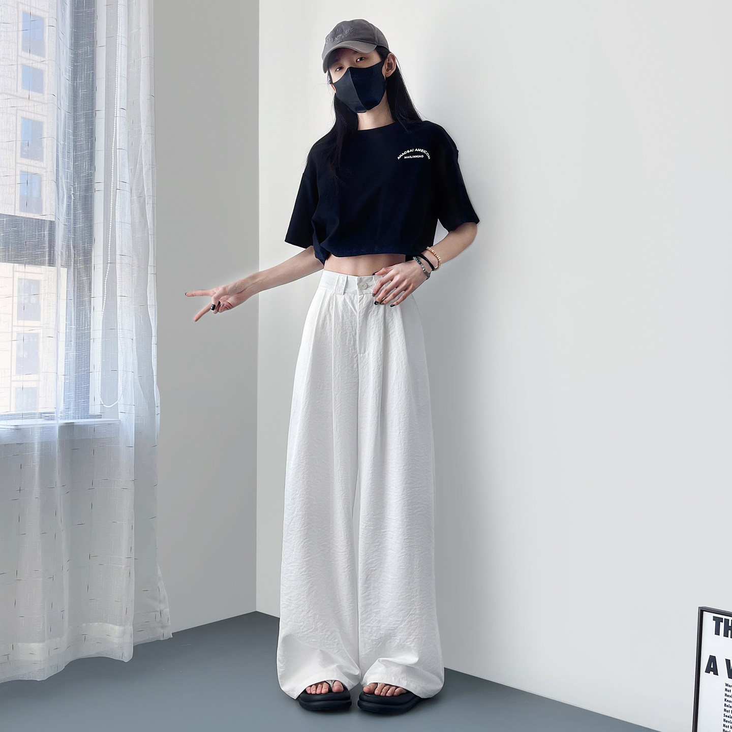蜜略大码宽松胖MM春季纯色阔腿裤