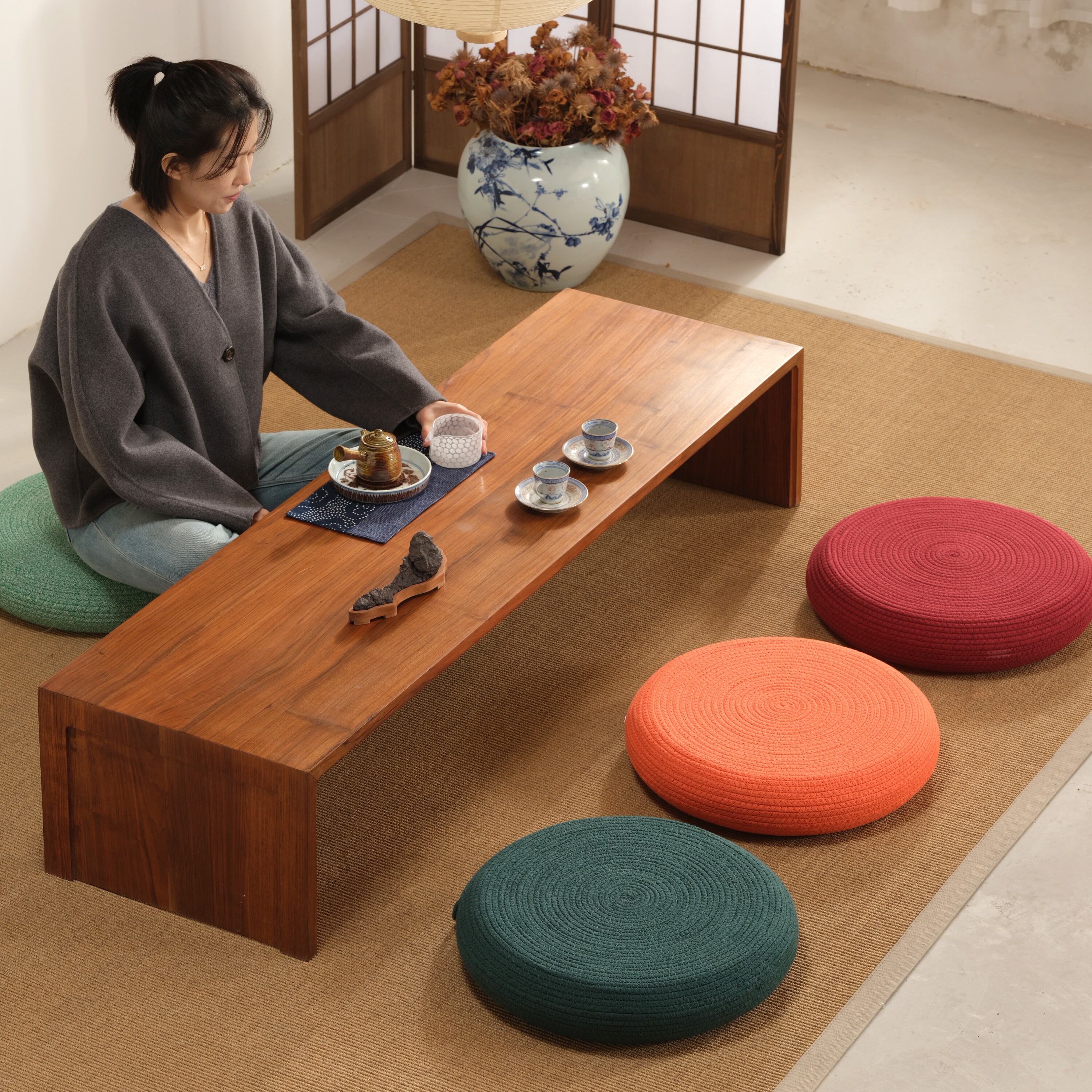圆形多色加厚加高坐垫 蒲团坐垫棉绳榻榻米飘窗坐垫家用客厅坐墩