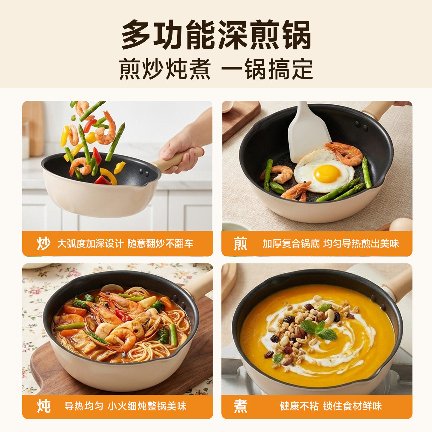 苏泊尔轻量火红点不粘煎锅平底加深煎炒锅多功能家用燃气电磁通用