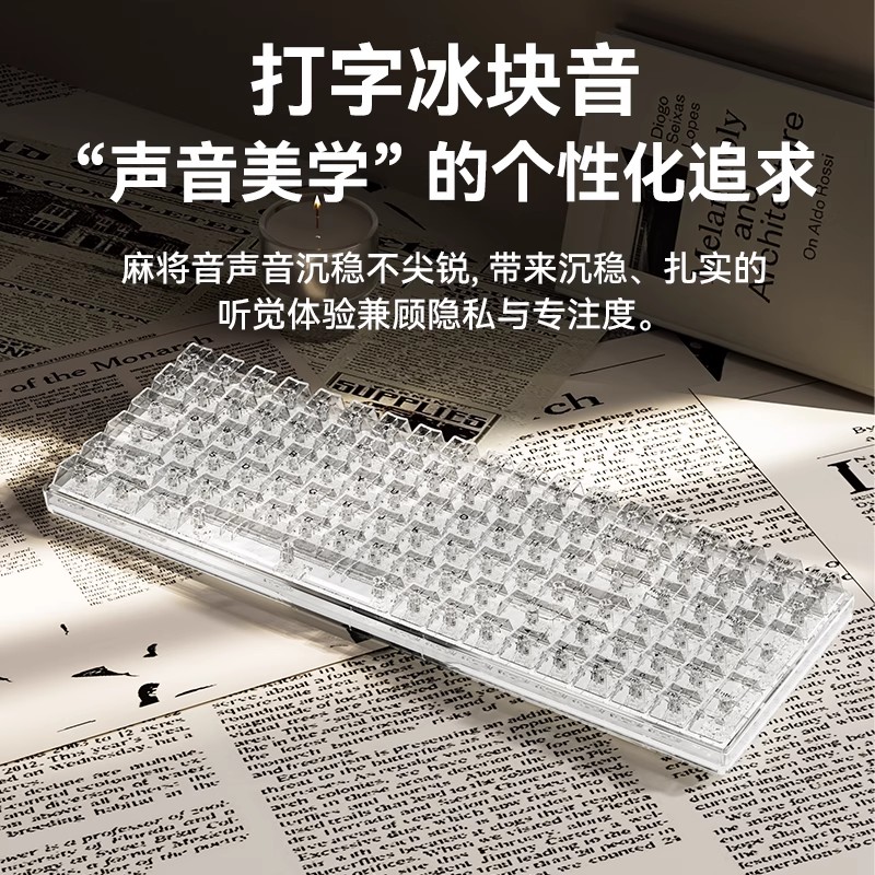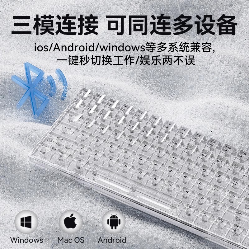 梦族H100无线透明机械键盘冰块麻将音办公台式电脑办公游戏通用
