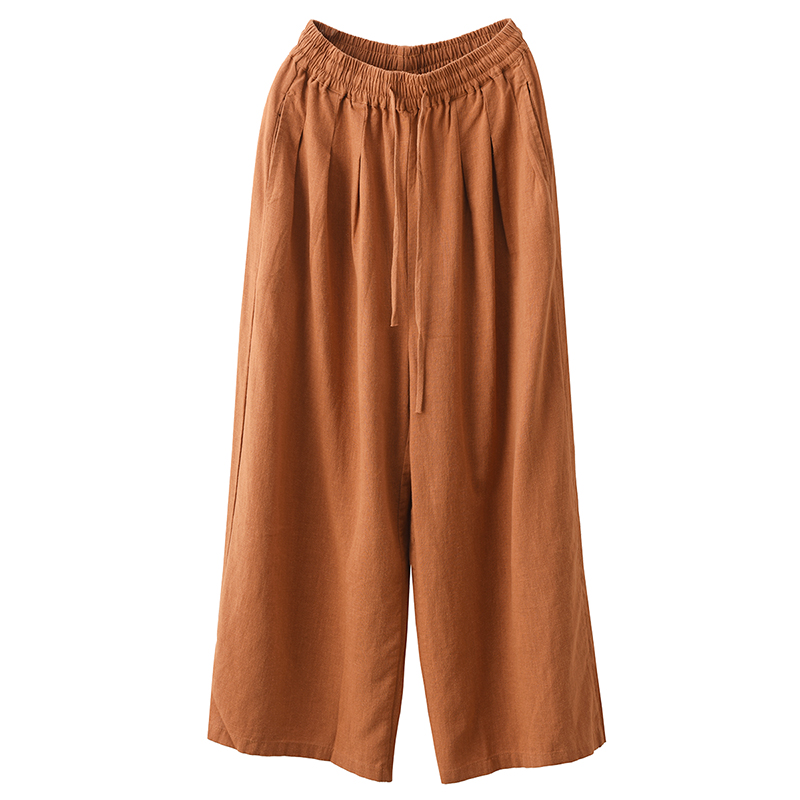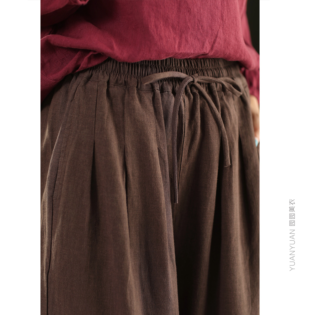 园园美衣复古天丝苎麻阔腿裤女系带松紧腰显瘦文艺垂顺宽松长裤秋