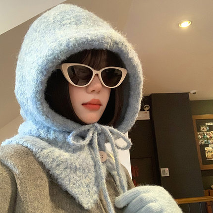 韩版蓝色巴拉克拉法帽女秋冬季