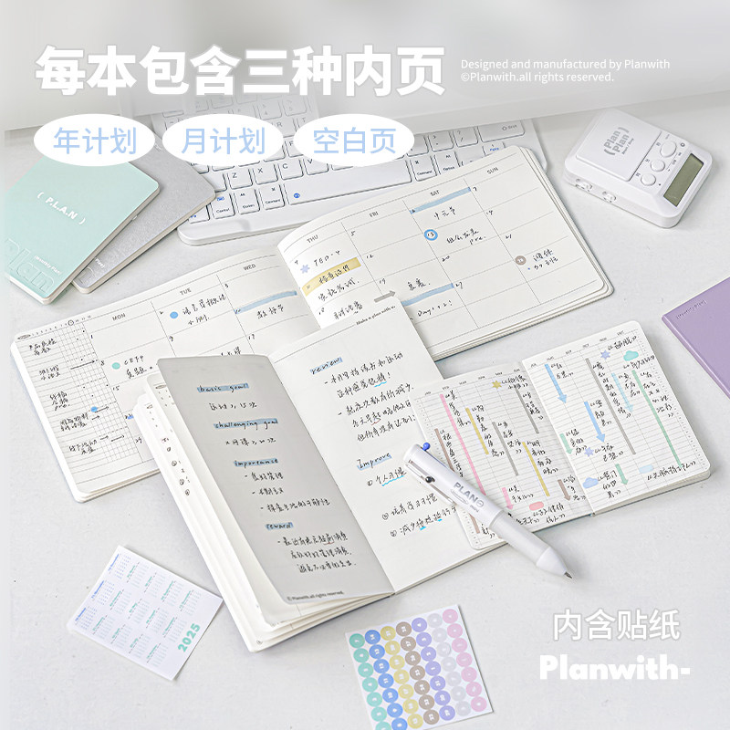 Planwith2025年日程本随身本每日周计划本todolist旅行计划表薄款a6笔记本本子高颜值ind风a7小本子迷你手账