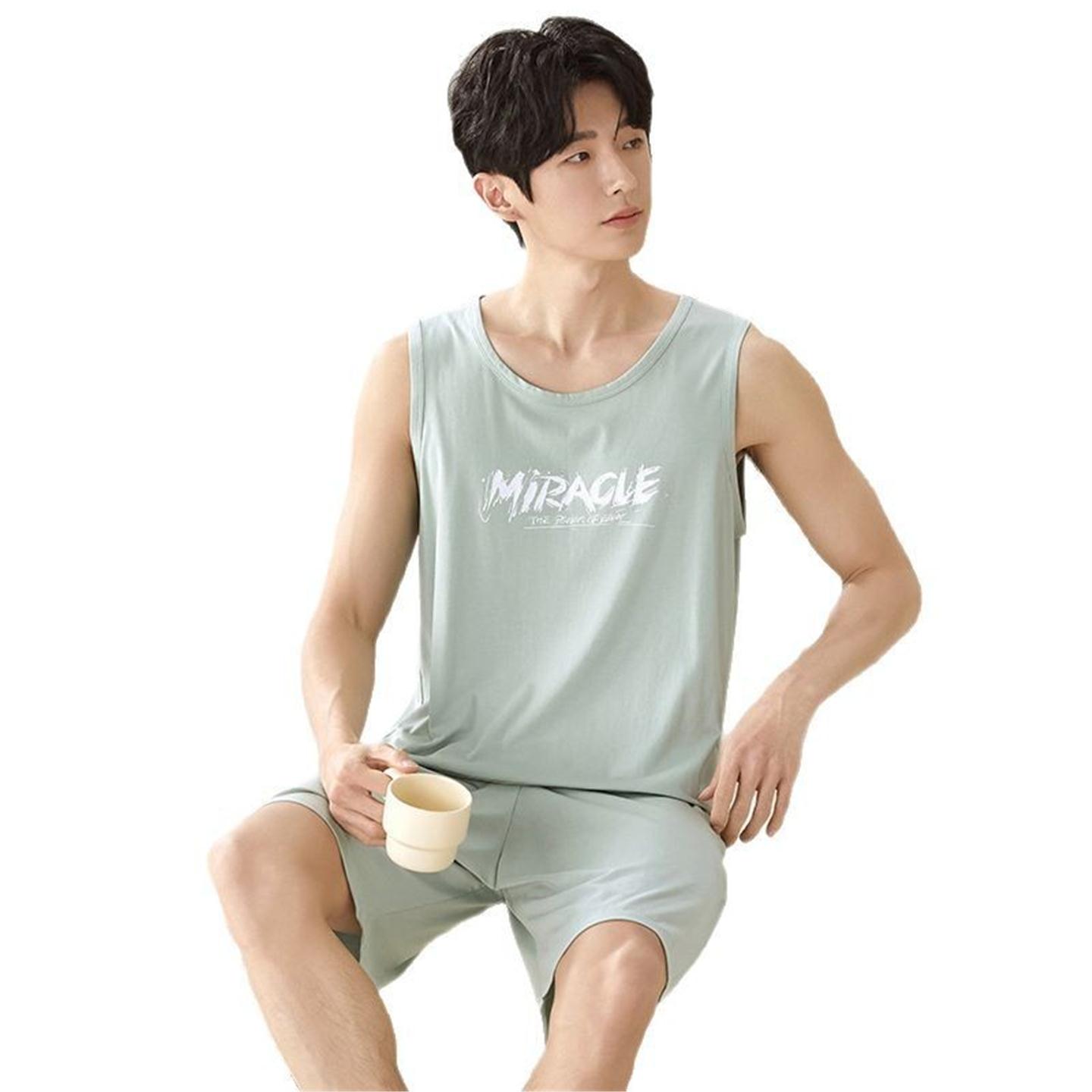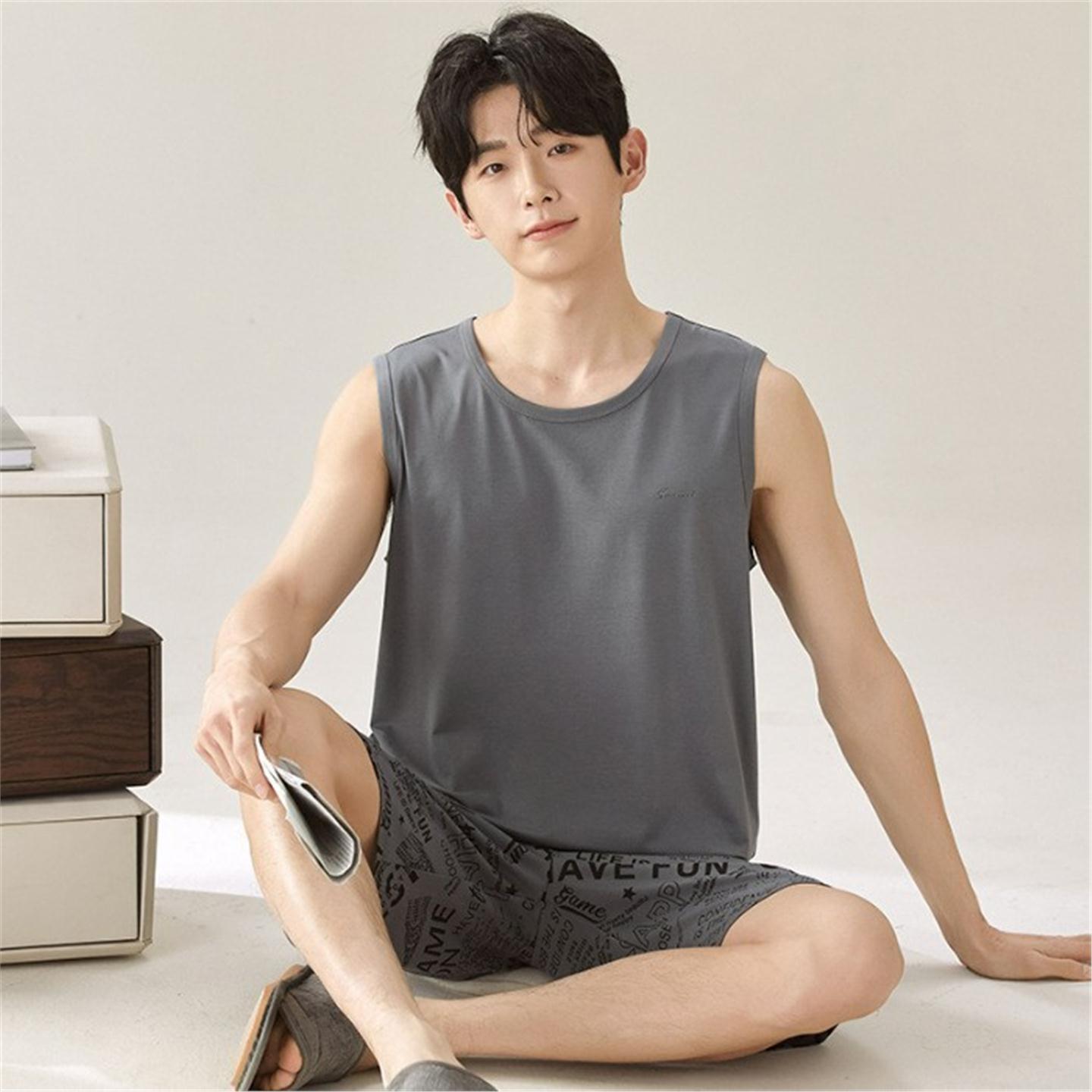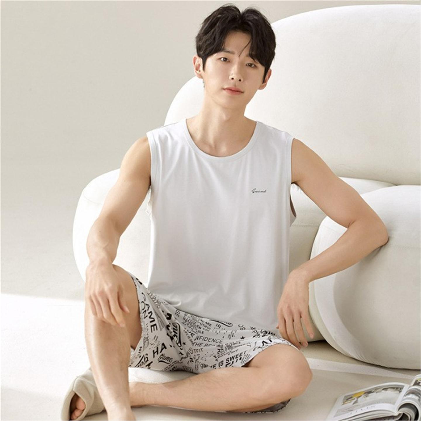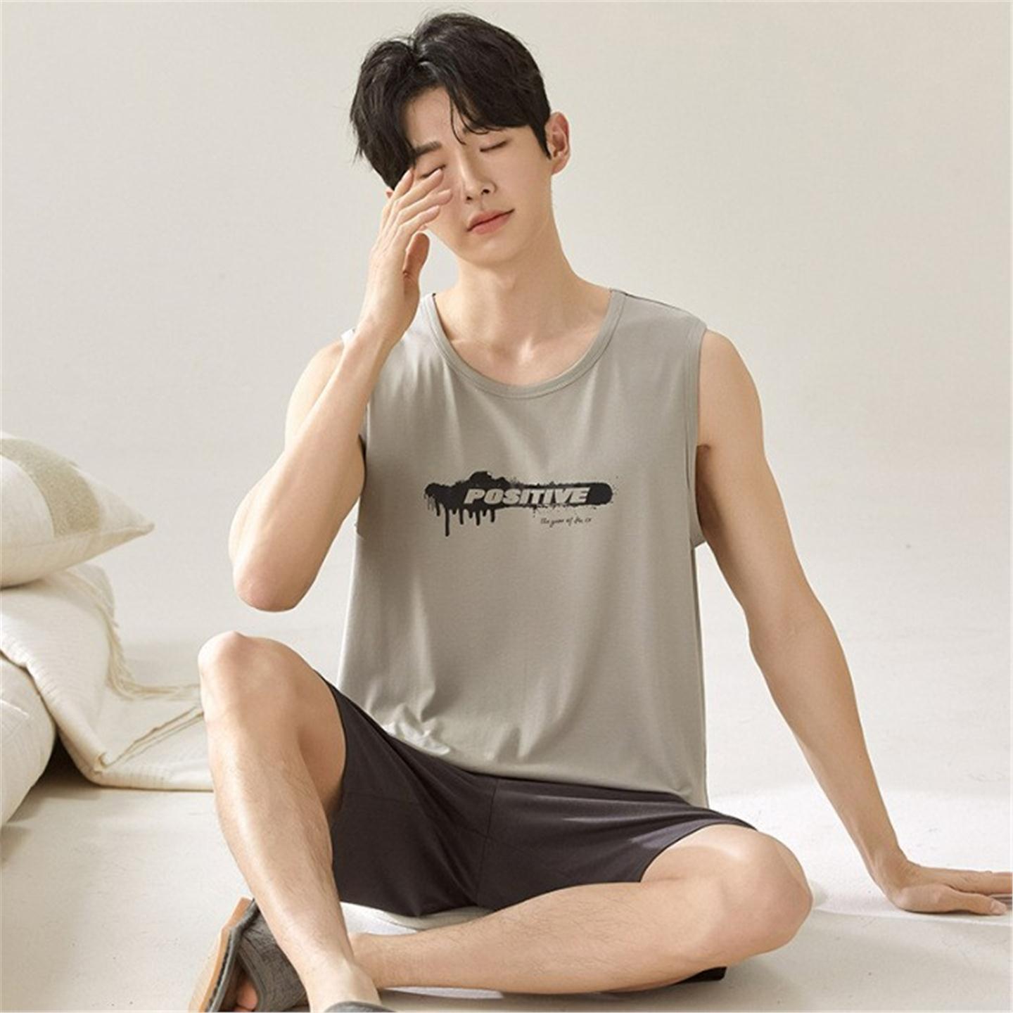 穿男舒适睡衣夏季简约青少年凉感透气背心莫代尔可外短裤新款无袖