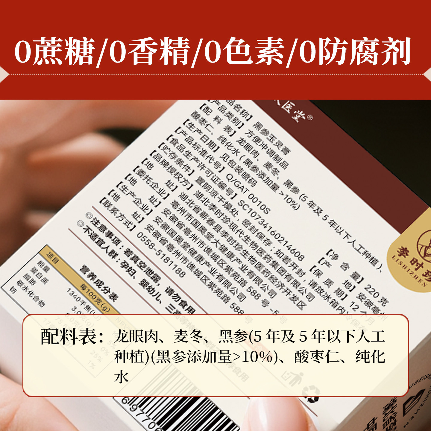 李时珍老字号黑参玉灵膏正品双补蒸制气血桂圆西洋人参酸枣仁气血