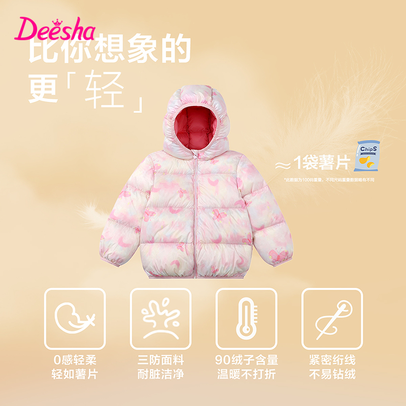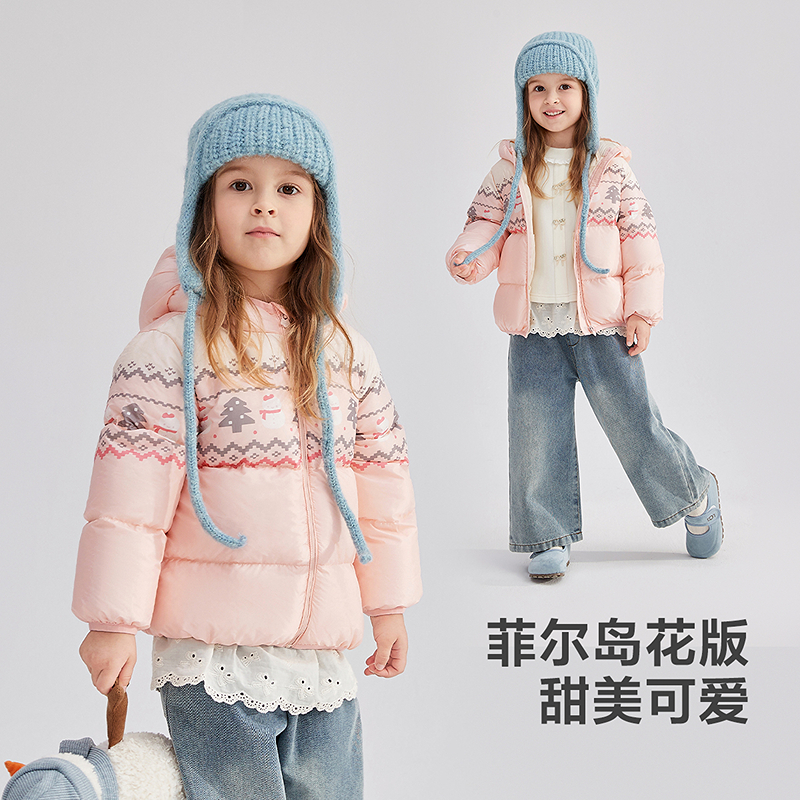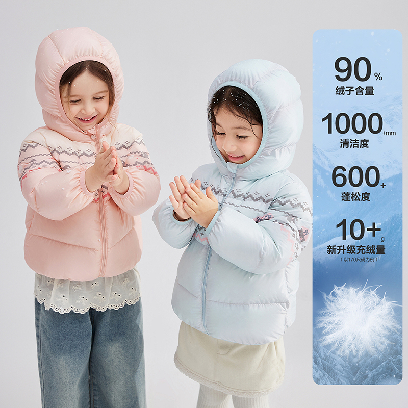 笛莎童装女童羽绒服冬季新款儿童女孩宝宝羽连帽外套短款轻薄三防