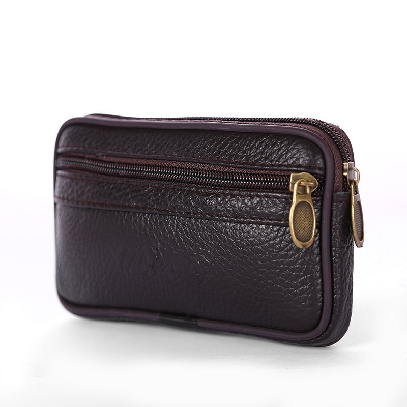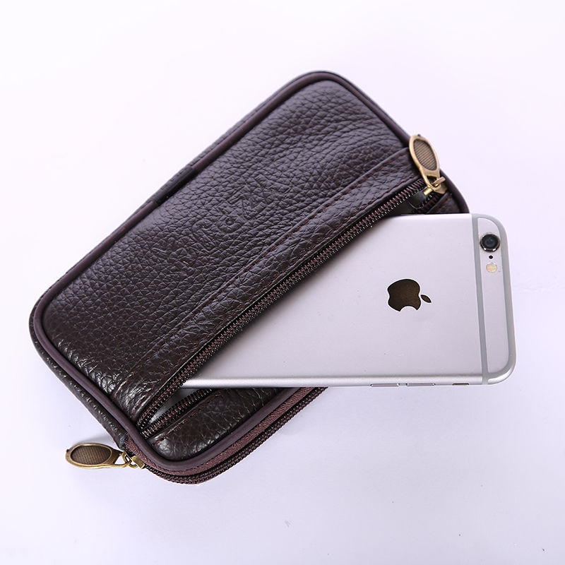 2025新款男士装手机腰包工地干活真皮带拉锁头层牛皮迷你穿皮带