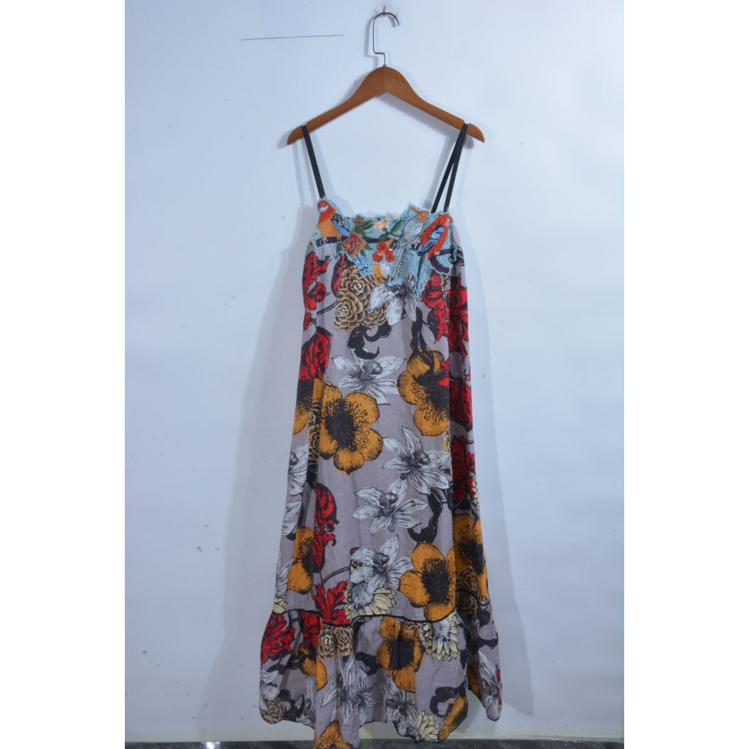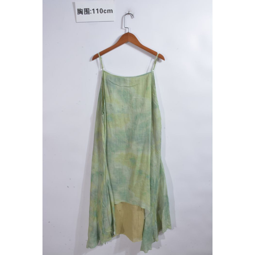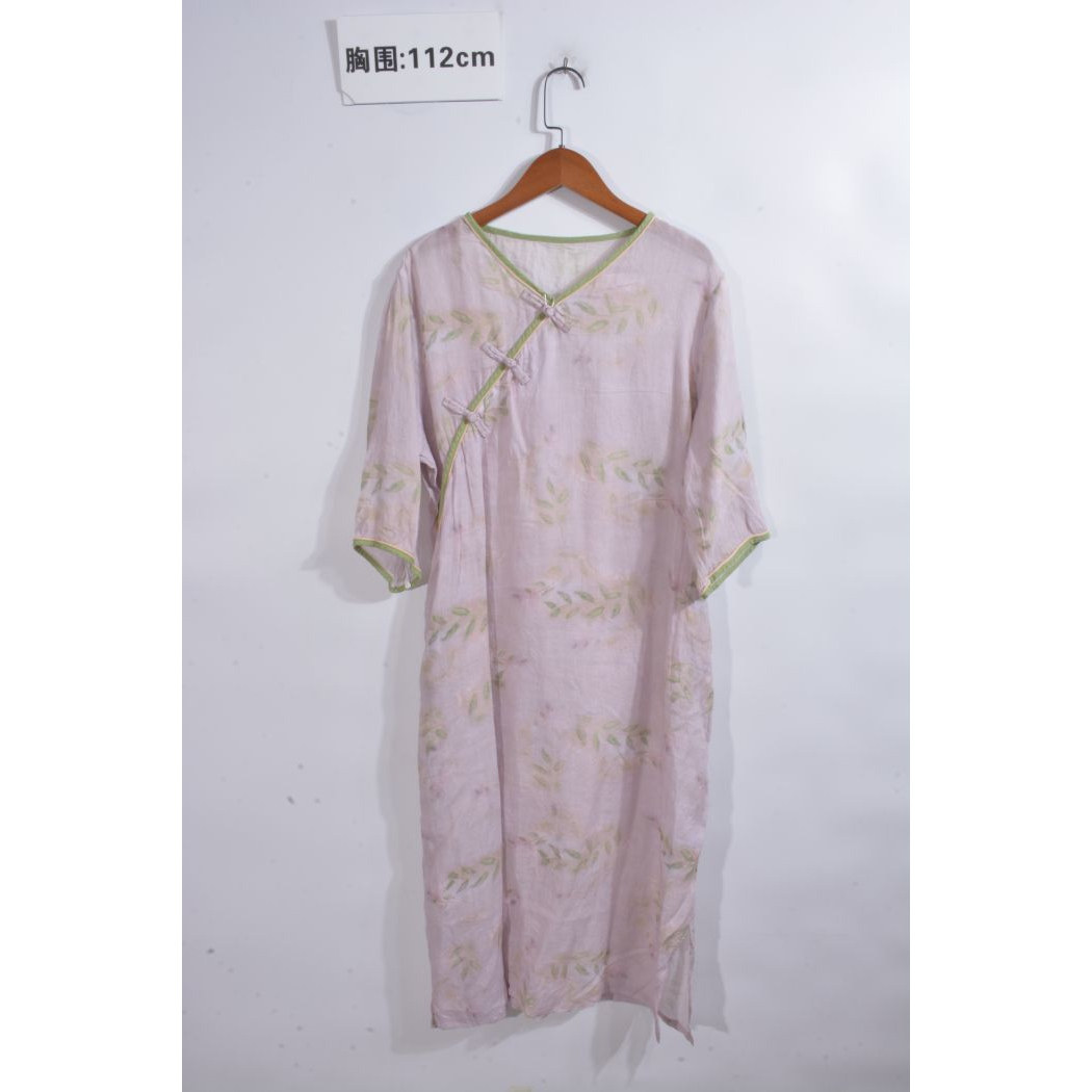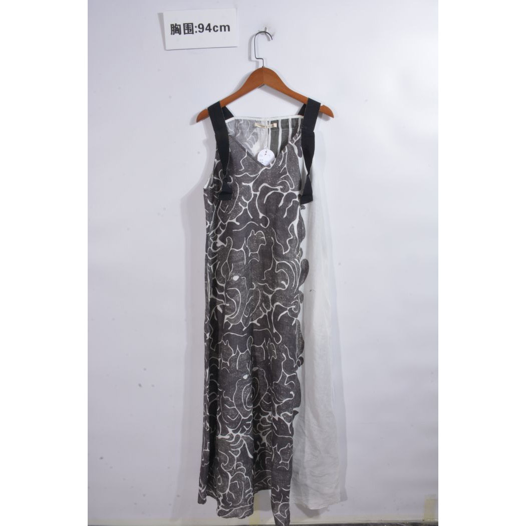 古着vintage汉麻亚麻苎麻纯色麻料超长连衣裙ML1