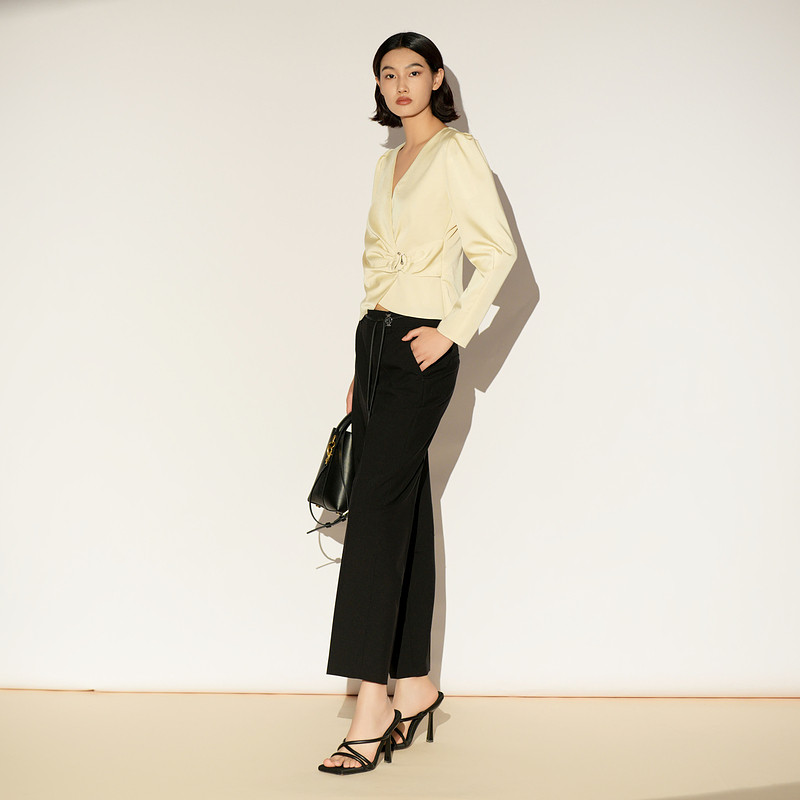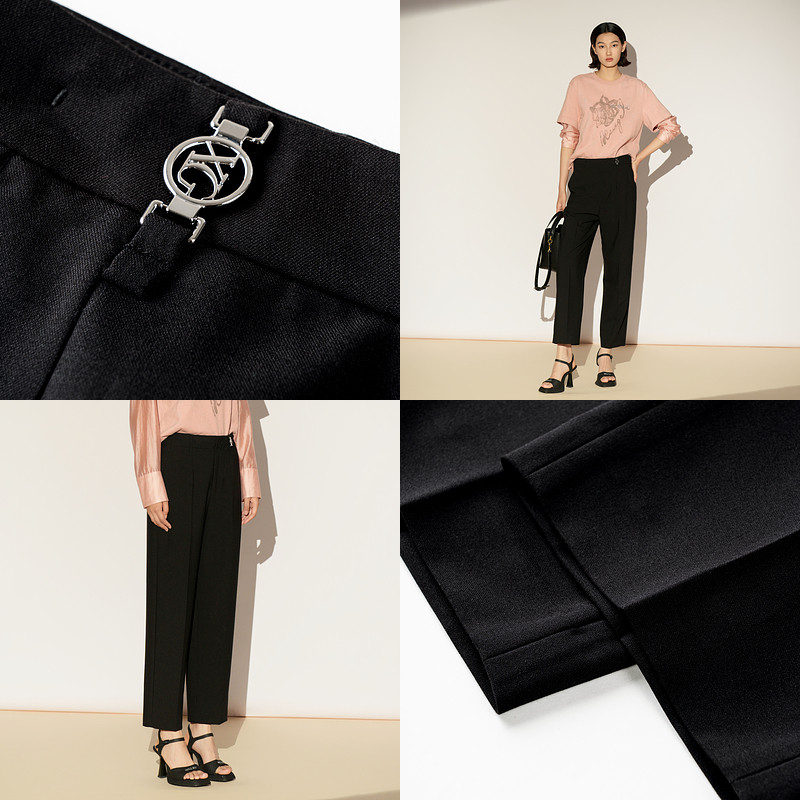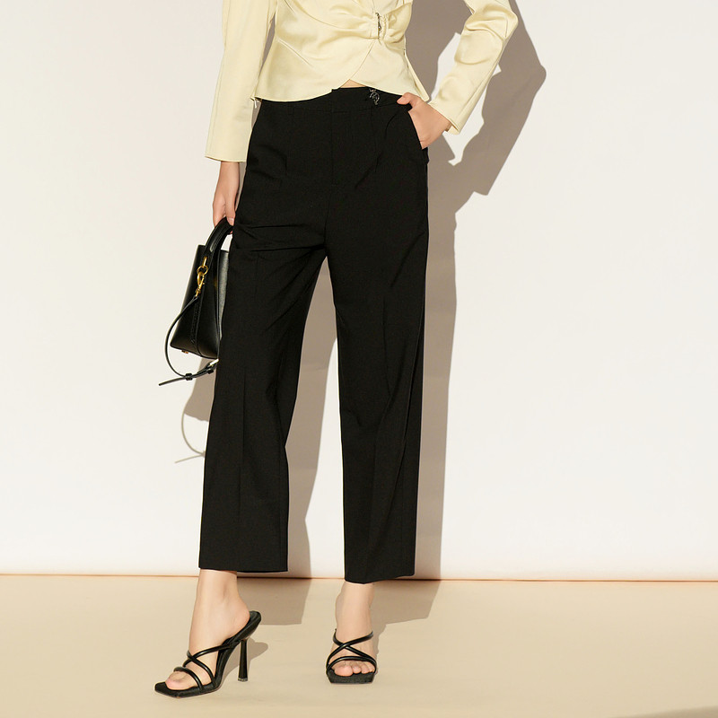 XG/雪歌26春新款黑色九分直筒裤女显瘦高腰休闲西裤XL102001A390