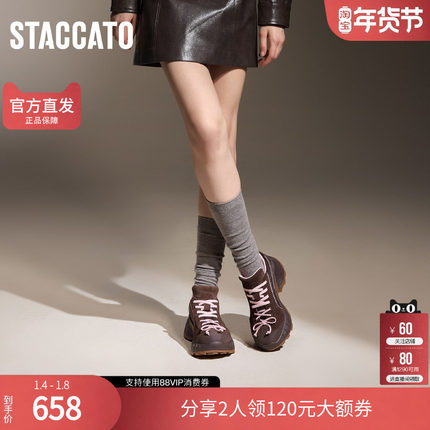 思加图正品2025超火休闲栗子色棕色厚底增高老爹鞋女鞋S2154AM5