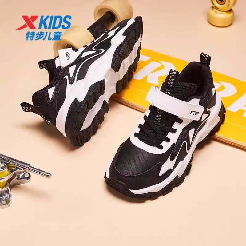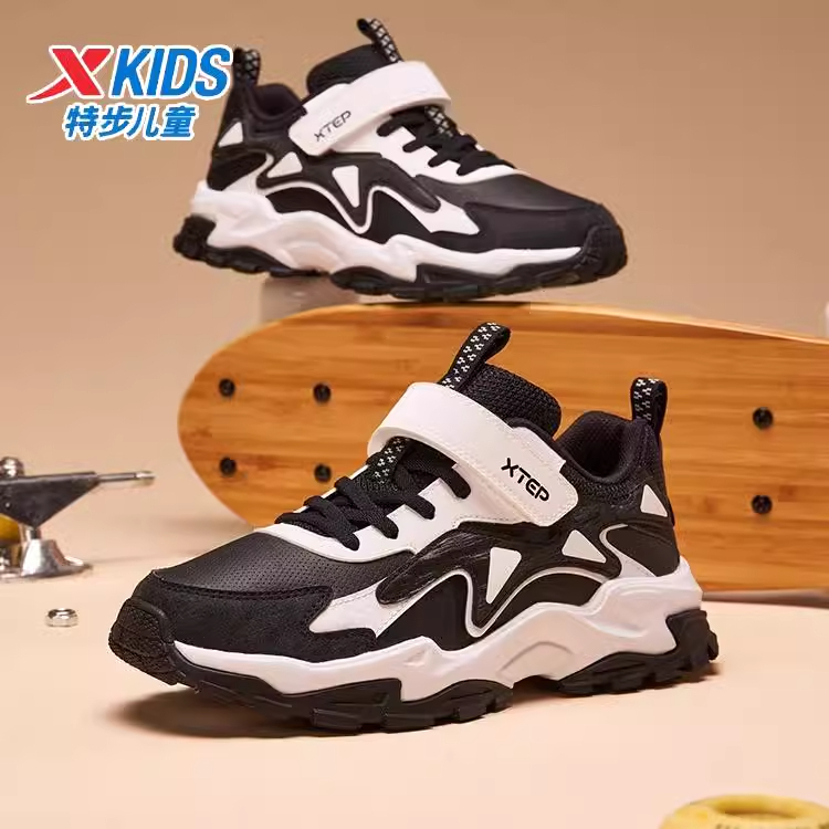 特步儿童冬季新款儿童运动鞋皮面防水男童鞋子中大童防滑耐磨跑鞋