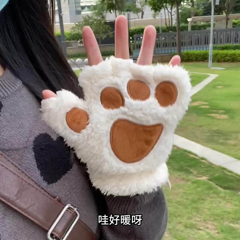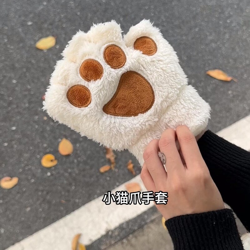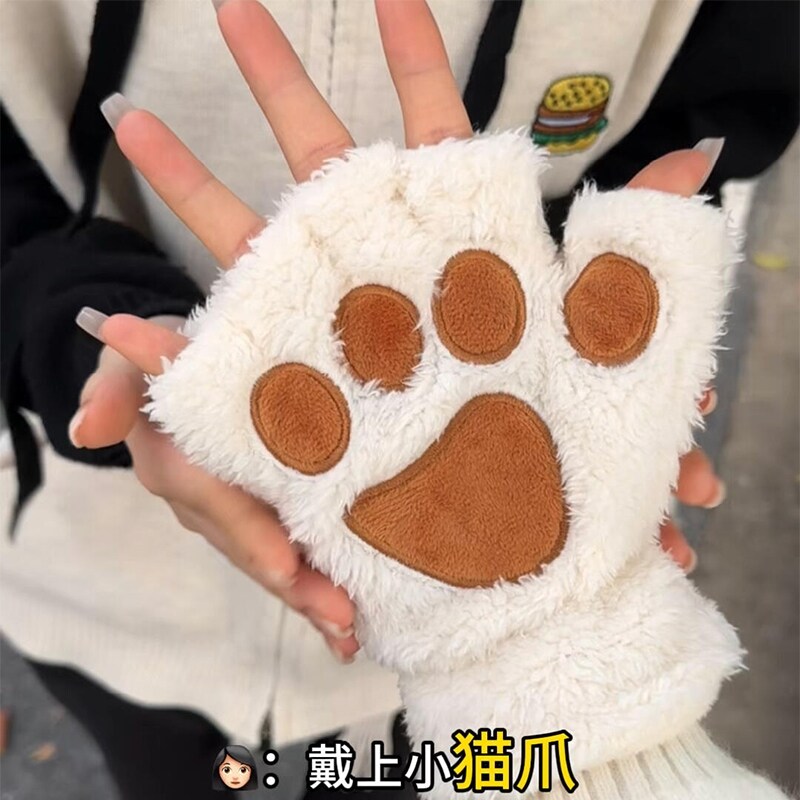 会发热的猫爪手套暖宝宝猫爪穿戴式暖手宝冬季女骑行加热露指手套