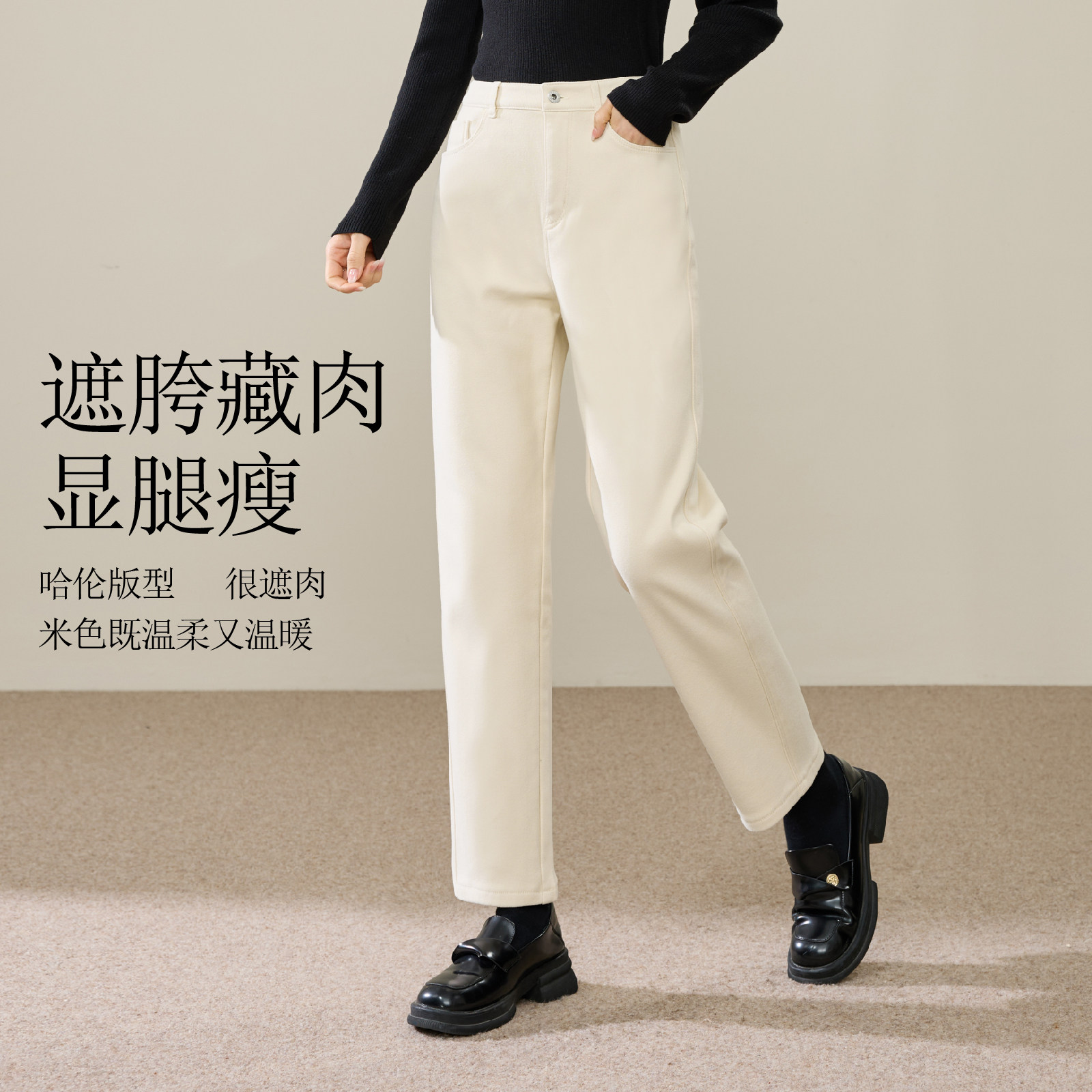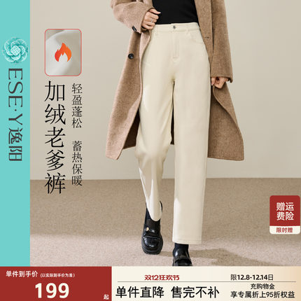 逸阳梨形显瘦加绒牛仔老爹裤女2025年冬季新款高腰遮胯宽松哈伦裤
