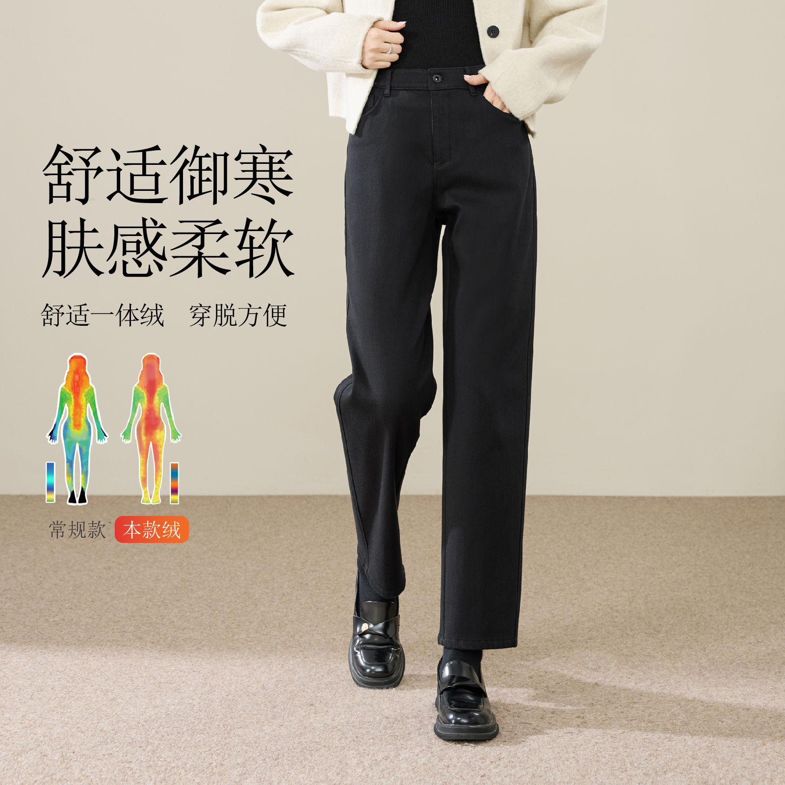逸阳加绒老爹牛仔裤梨形遮肉遮胯