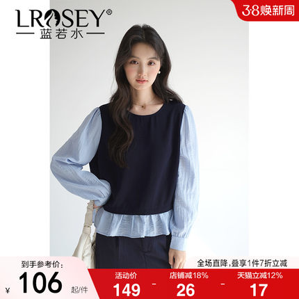 蓝若水大码女装2026新款春装假两件上衣微胖mm遮肚子显瘦韩系衬衫