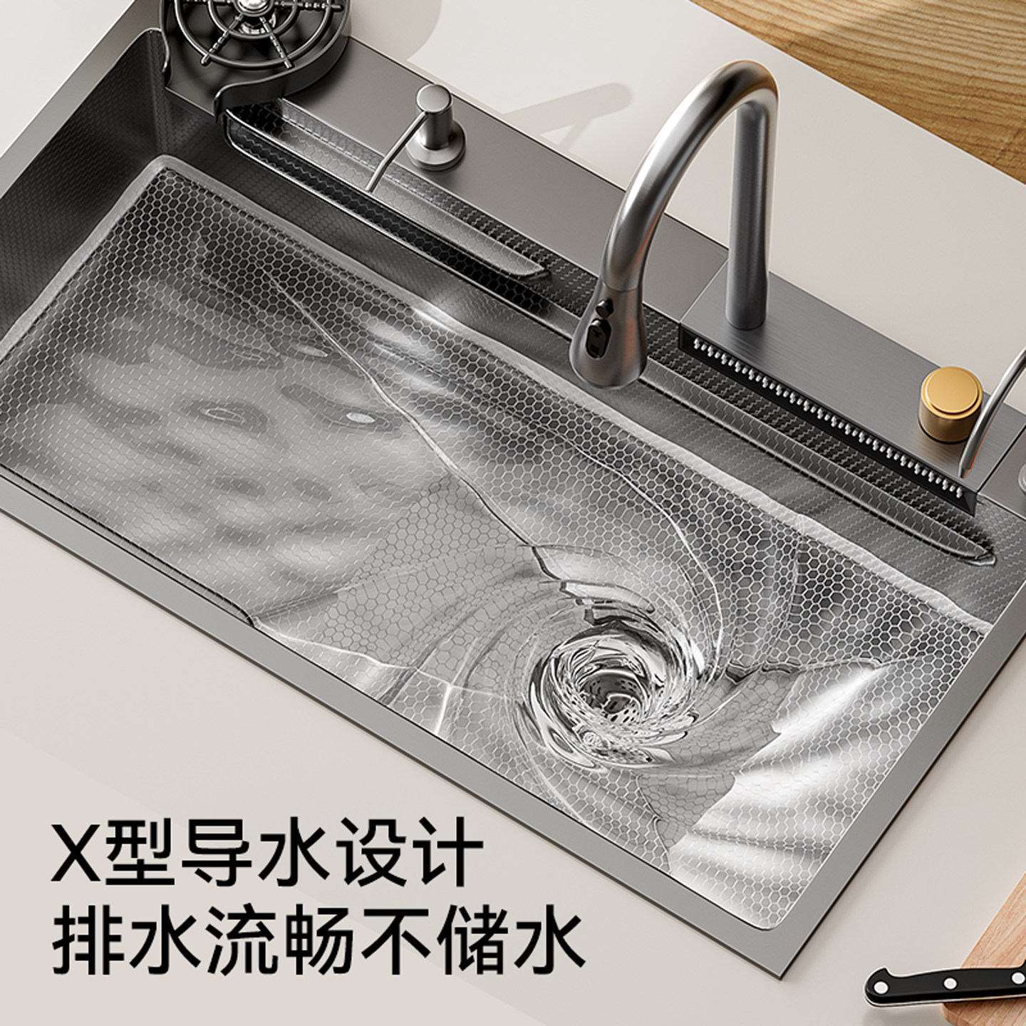 【防刮耐磨】蜂窝压纹厨房水槽