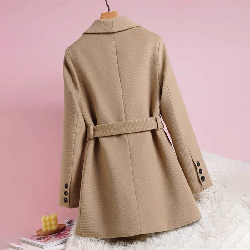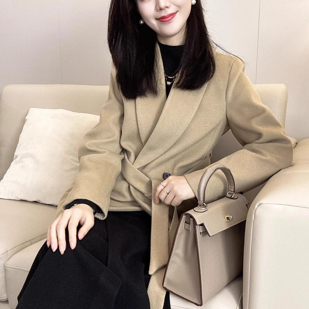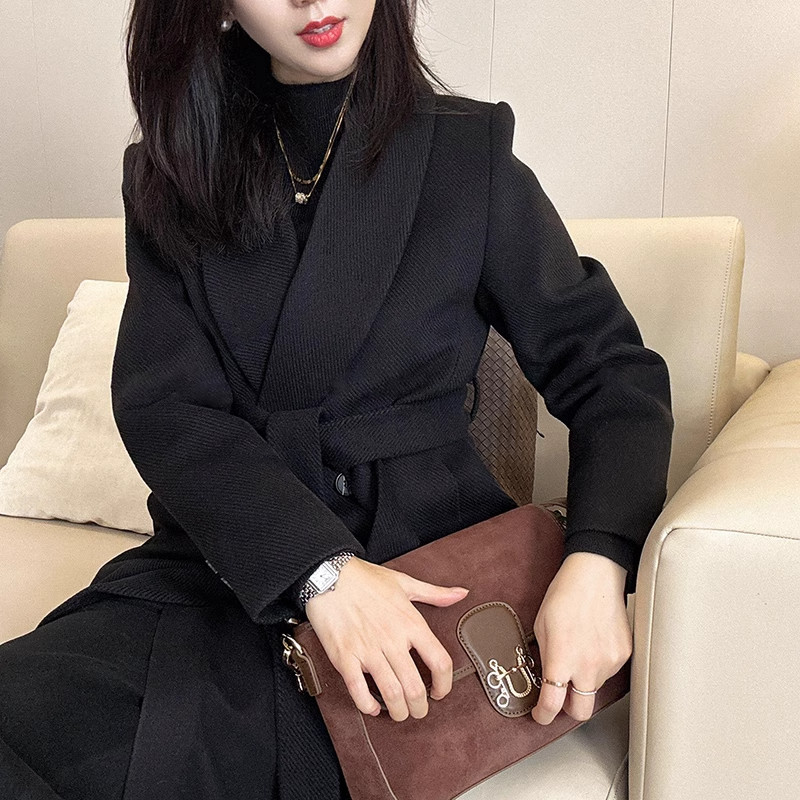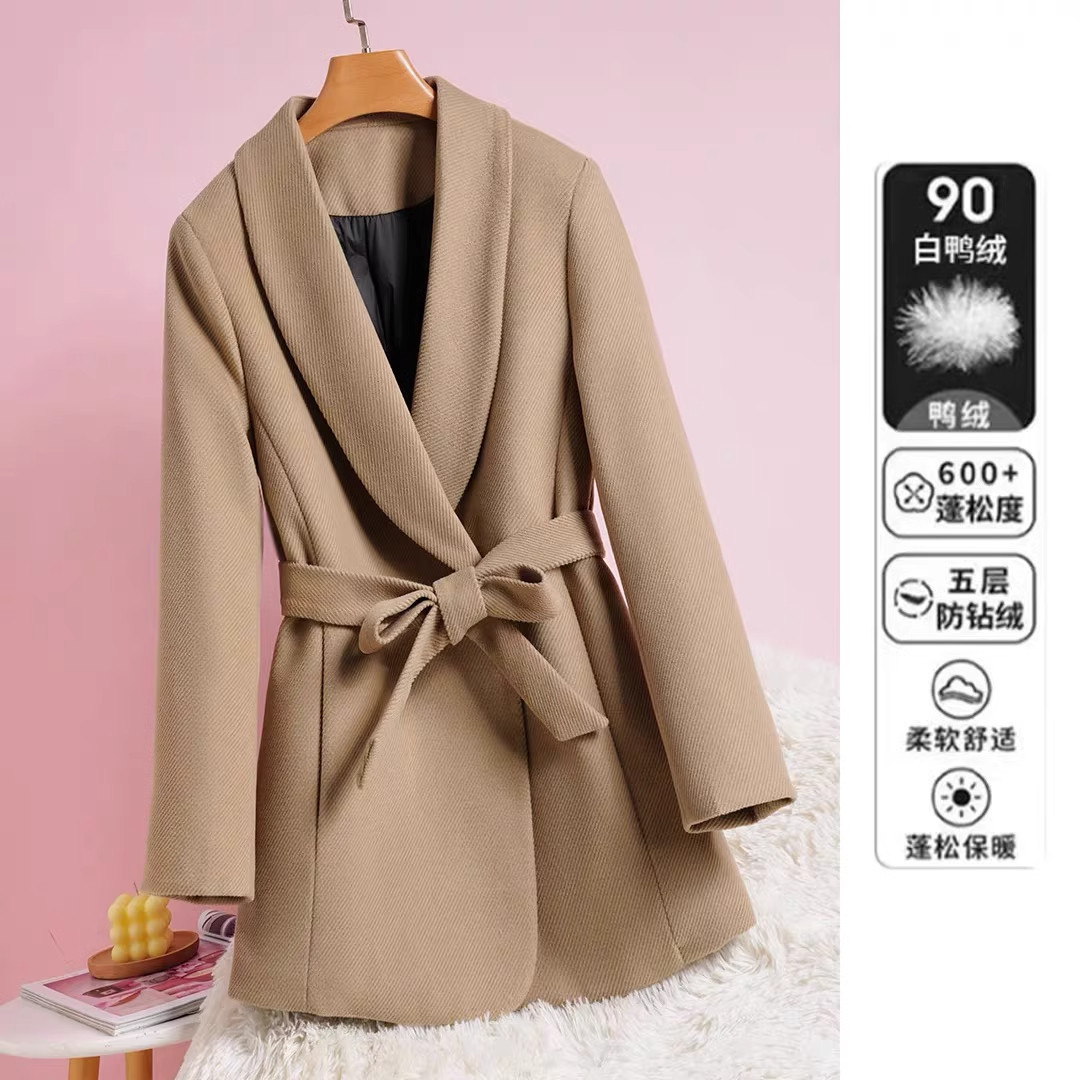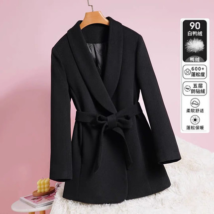 羽绒毛呢西装外套女冬季2025新款洋气白鸭90绒呢子大衣腰带气质潮