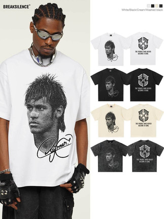 美式足球内马尔Neymar人物印花短袖T恤男复古纯棉宽松小领口半袖