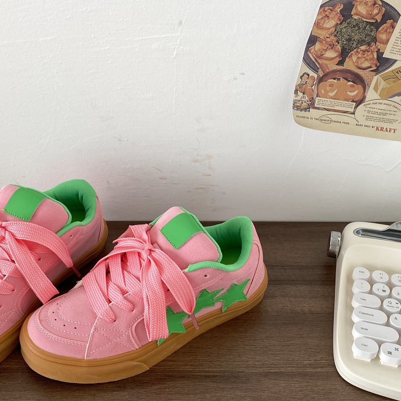喜叔粉绿撞色厚底星星板鞋女款小众chic百搭面包鞋子运动休闲鞋潮