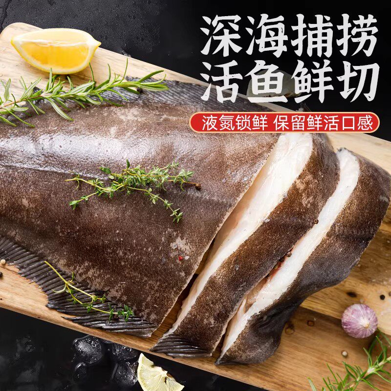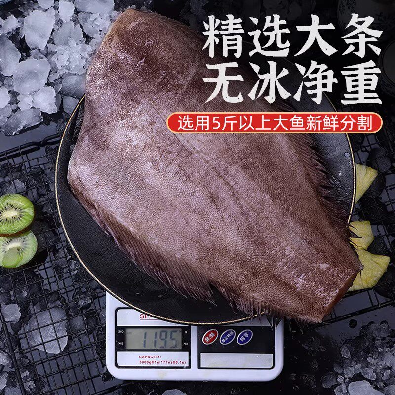 鲽鱼新鲜冷冻碟鱼身非格陵兰特大比目鱼蝶中段整条去头深海鸦片鱼