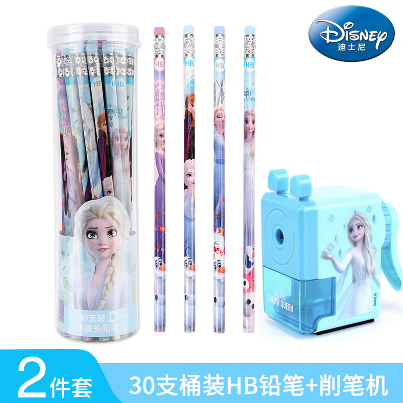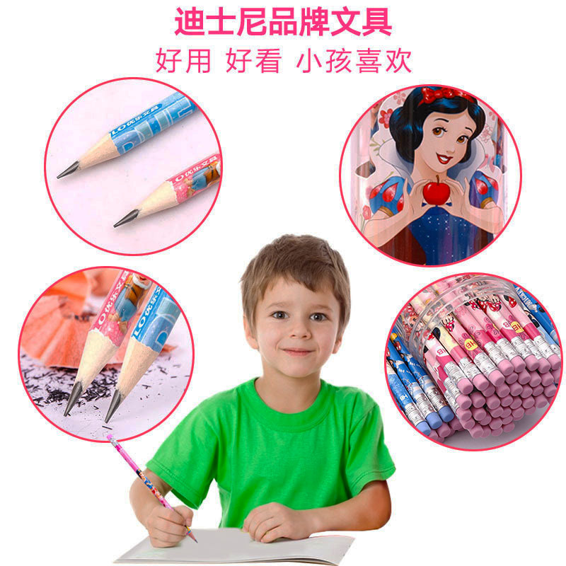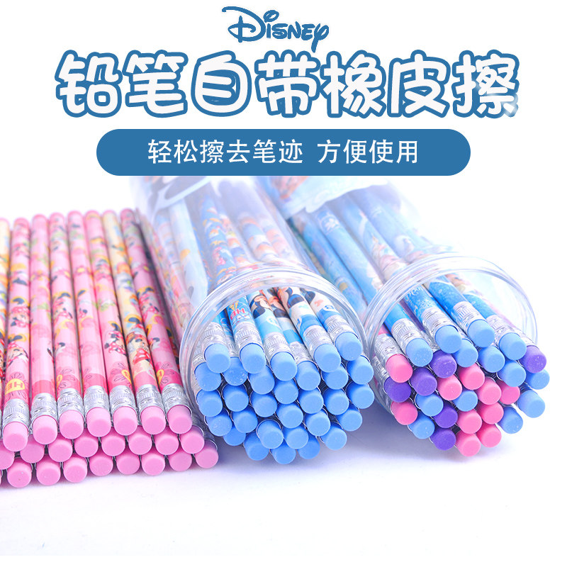迪士尼铅笔小学生HB幼儿园儿童带橡皮可爱卡通白雪公主冰雪奇缘初学者用橡皮擦头一年级文具用品套装学习用品