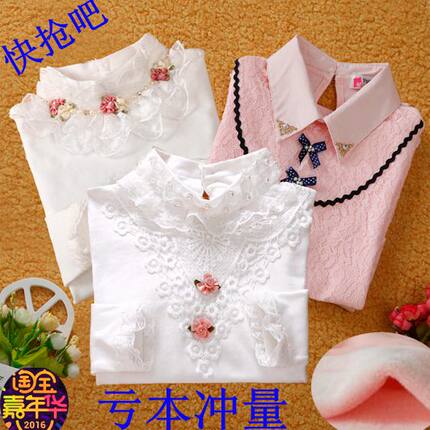 女童打底衫秋冬装2017新款韩版大童加绒加厚蕾丝纯棉百搭长袖t恤