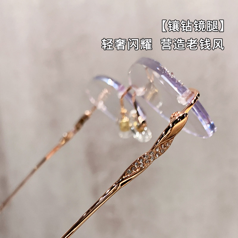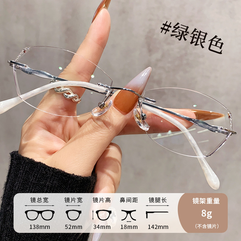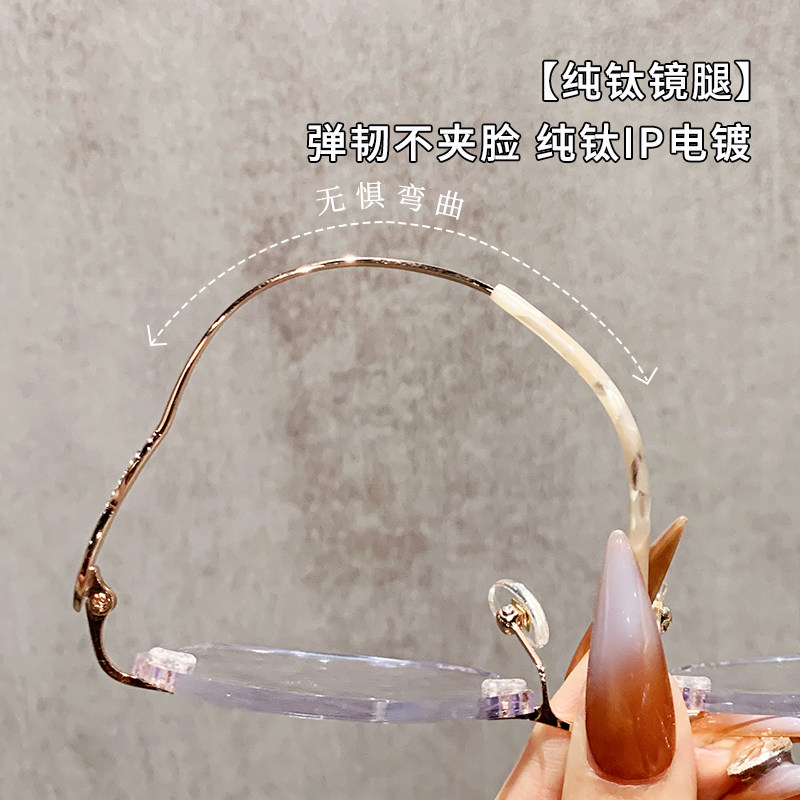 138mm超轻纯钛无框眼镜小脸小框防蓝光眼睛近视可配度数钻石切边