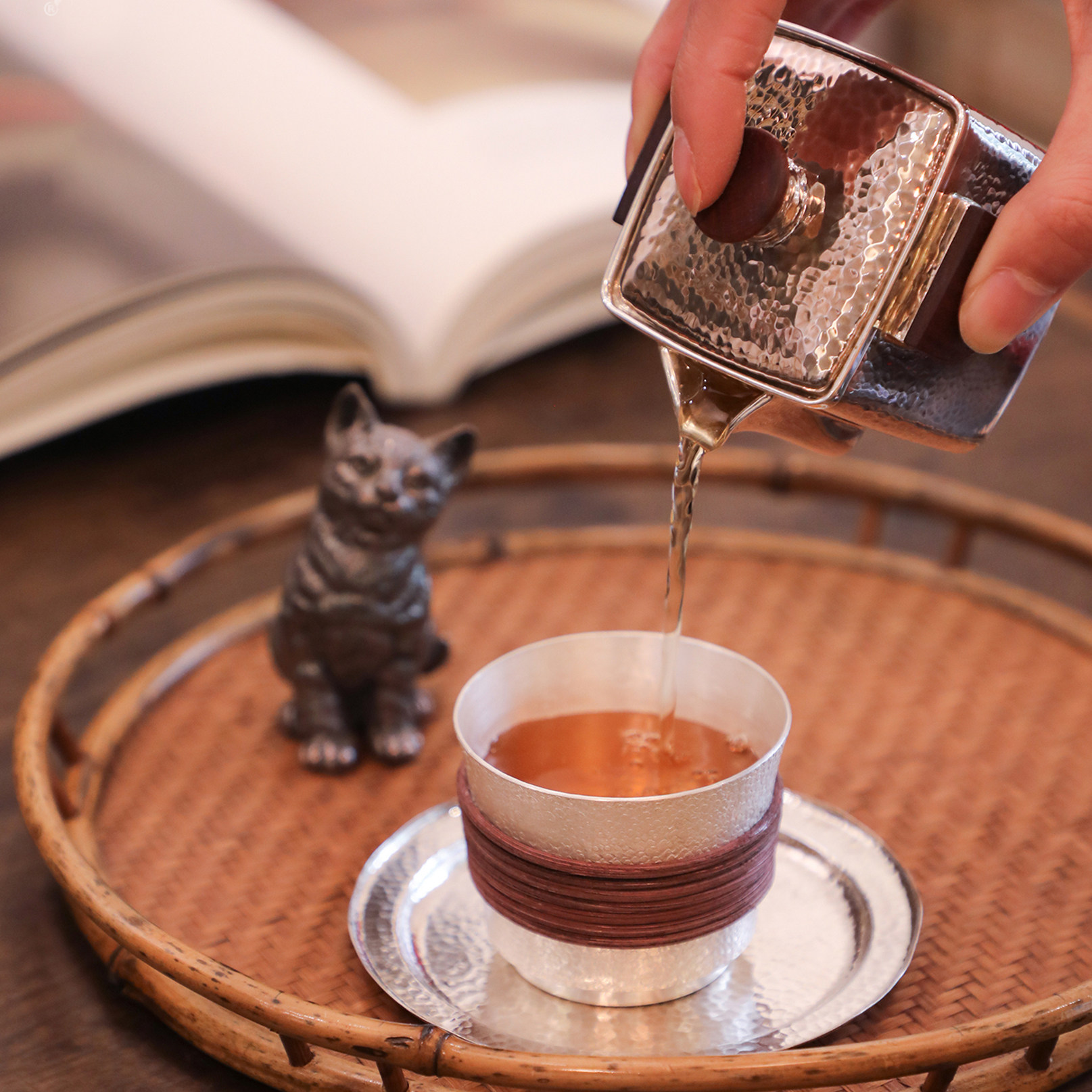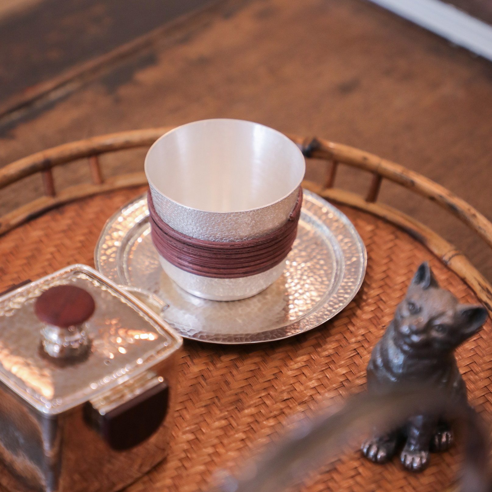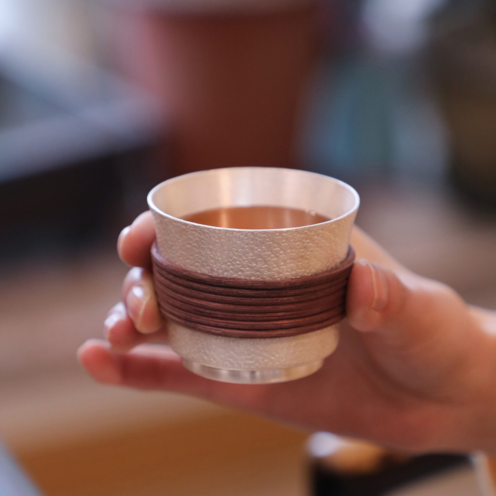 纯银时代纯银茶杯个人品杯足银999纯手工缠藤隔热小酒杯送礼100ml
