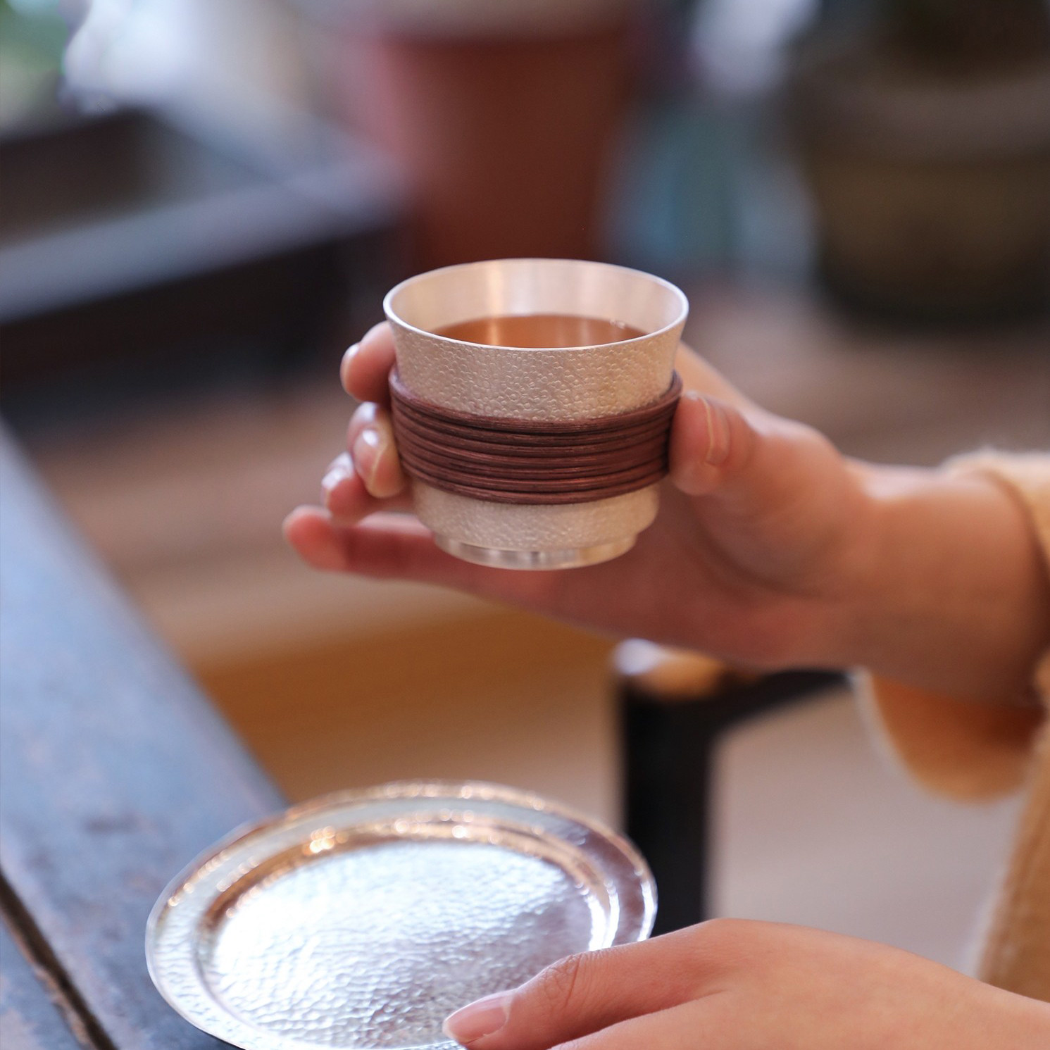 纯银时代缠藤隔热纯手工足银茶杯