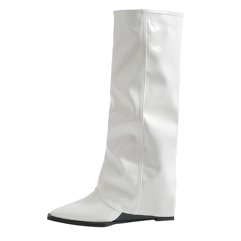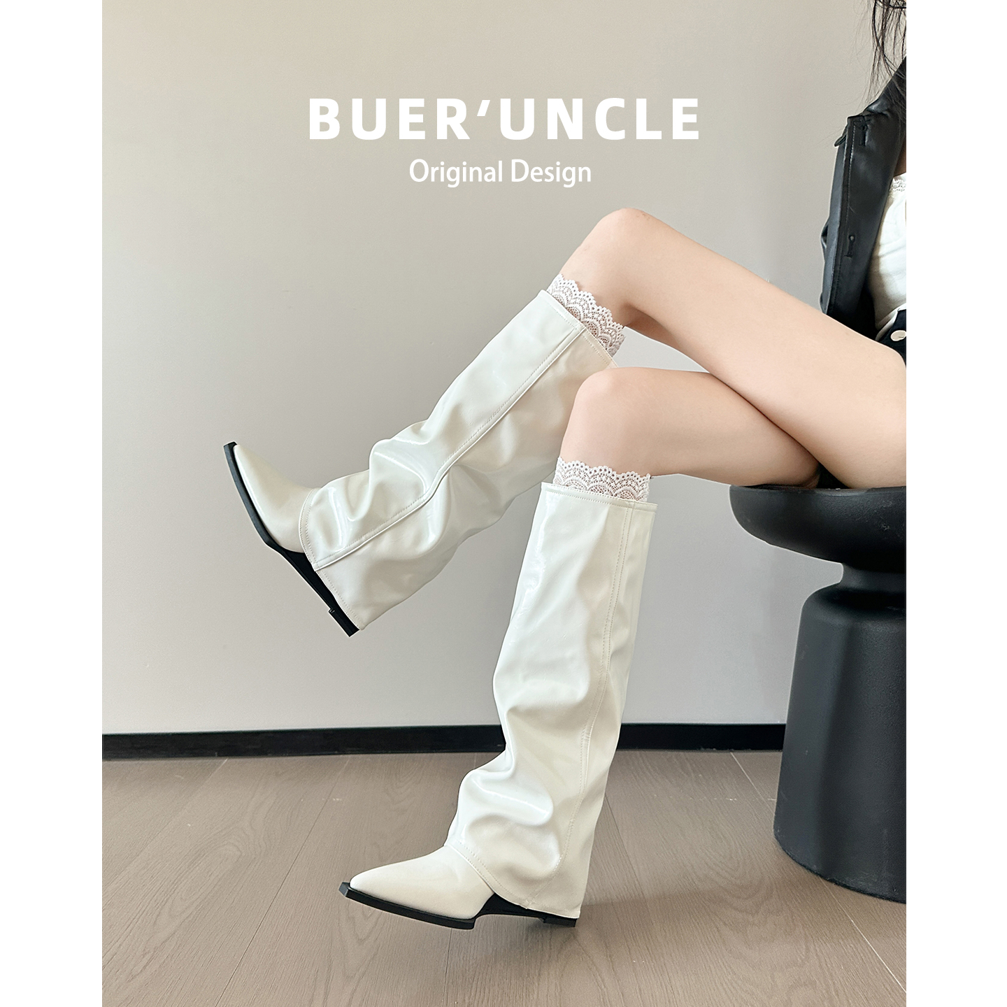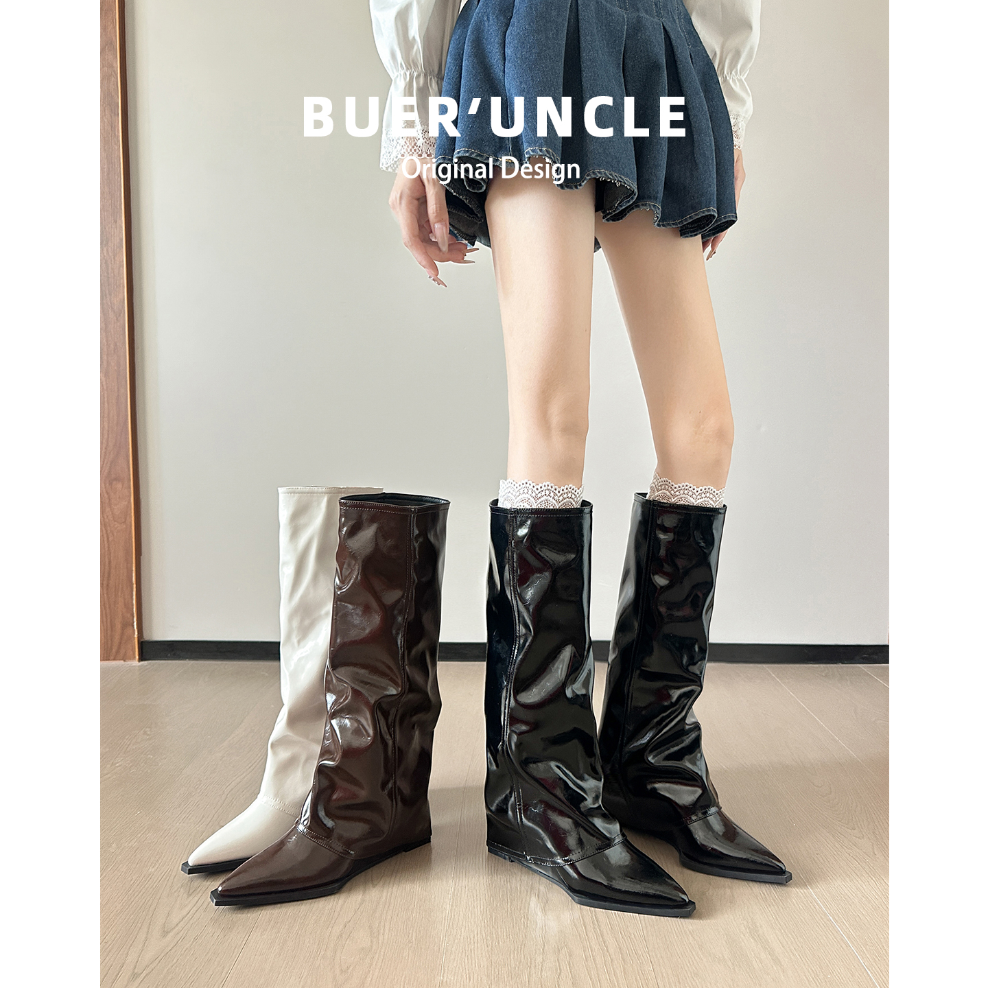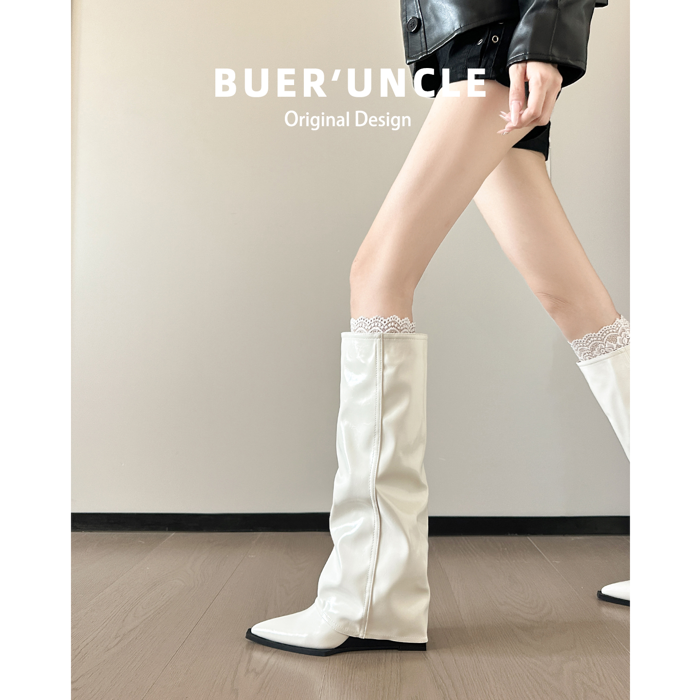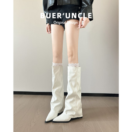 羊皮版!欧美长筒靴女2025新款秋冬美拉德尖头显瘦内增高裤管长靴