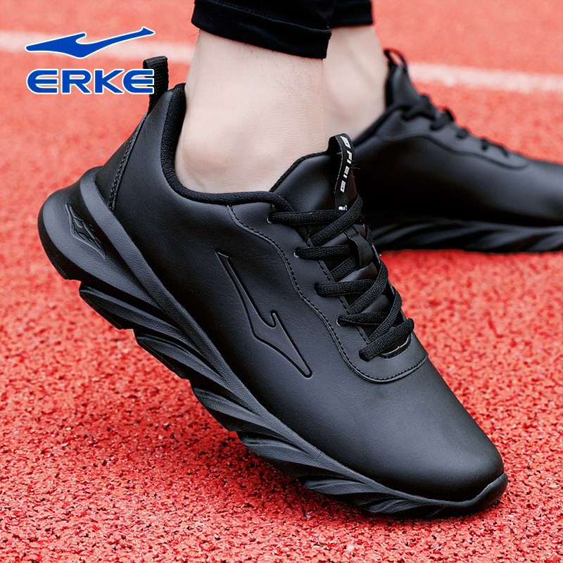 鸿星尔克男鞋运动鞋新款男士网面减震皮面防水鞋黑色跑步鞋休闲鞋