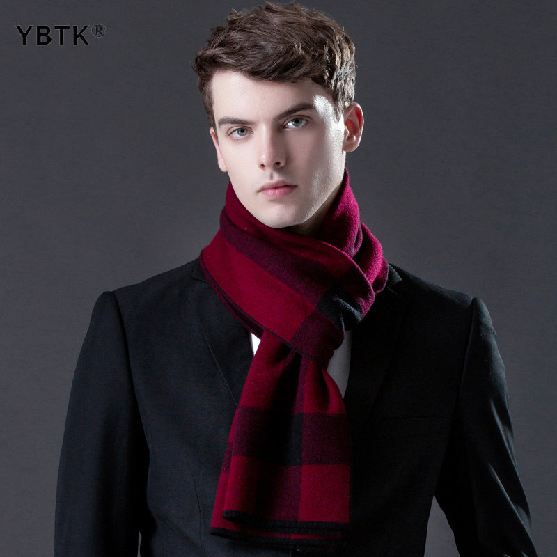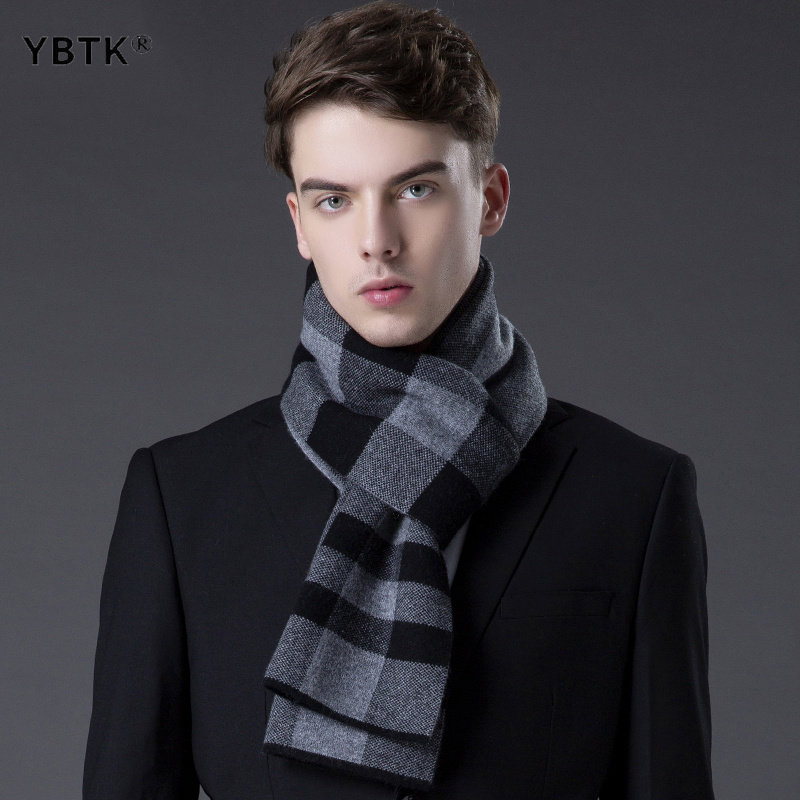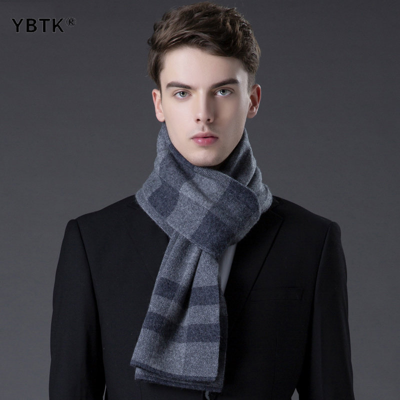 鄂尔多斯市100羊毛围巾男士2025年冬季新款时尚百搭格纹送礼围脖