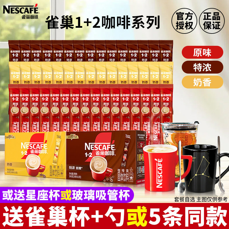 雀巢咖啡1+2特浓奶香原味三合一速溶咖啡粉条装学生提神官方正品