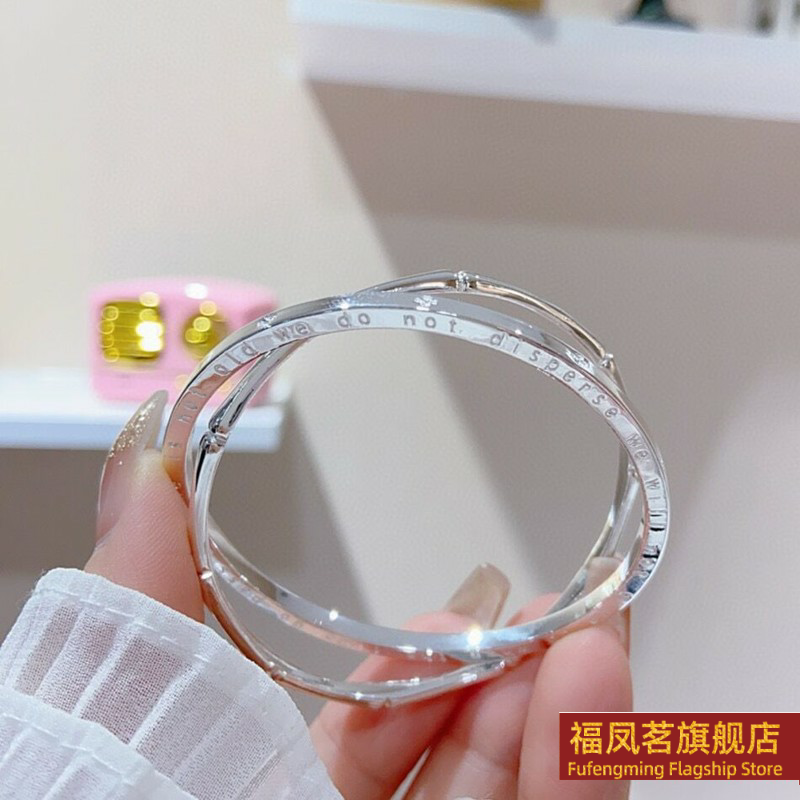 正生幸运四叶草竹节闭口纯银手镯足银9999女实心新款礼物双环银镯
