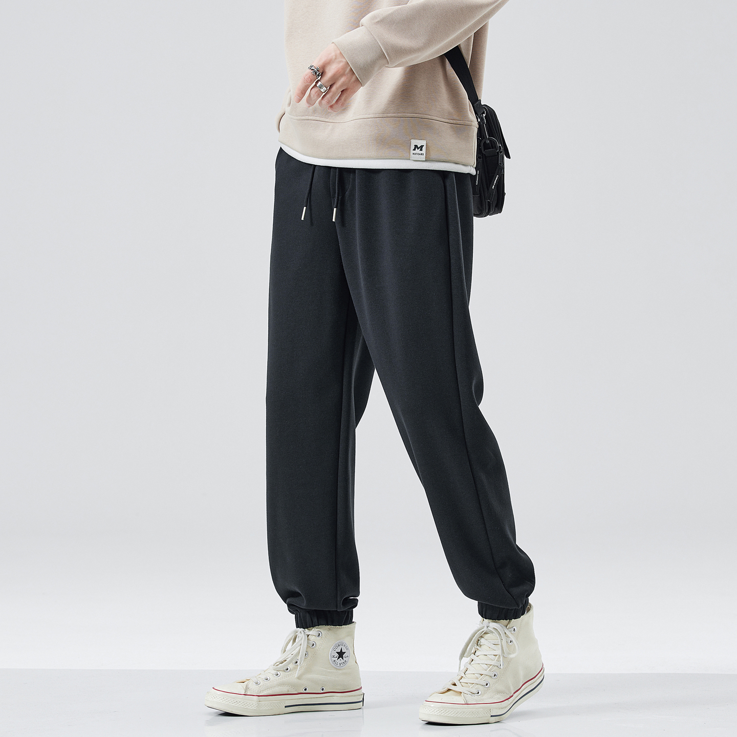 男士黑色束脚卫裤男冬季加绒加厚裤子休闲运动裤2025新款长裤男裤