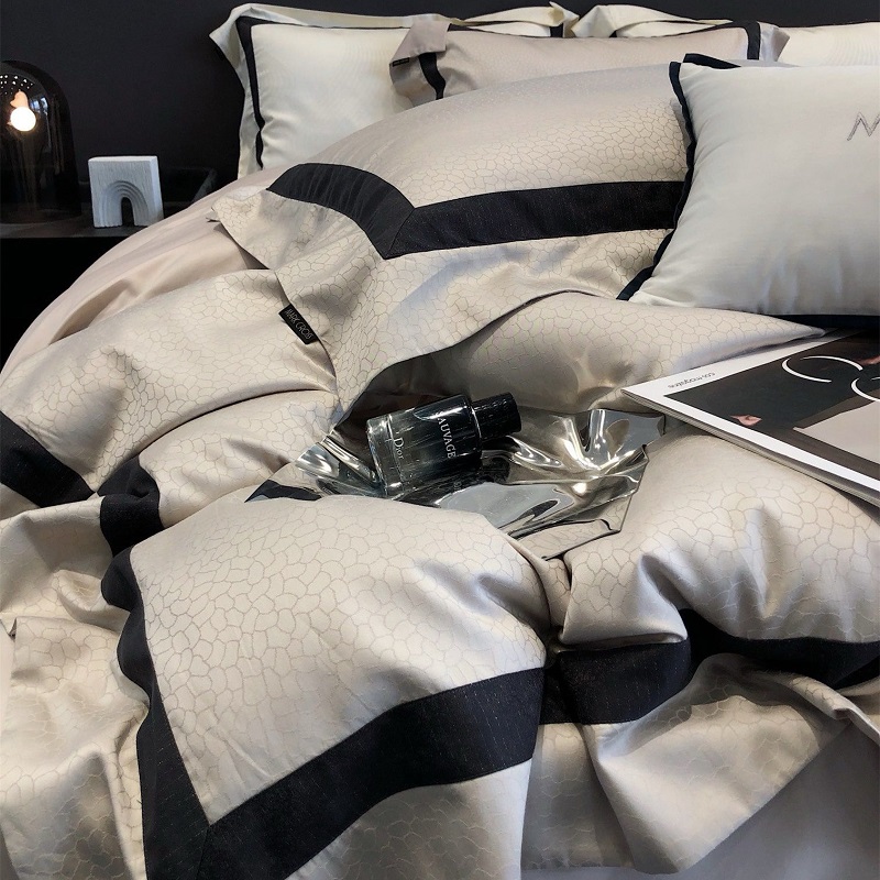 厂家直发【碧莎】奥地利天丝棉提花拼边四件套莱赛尔LF级奶丝床品