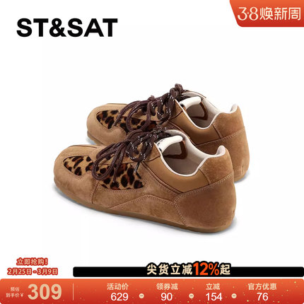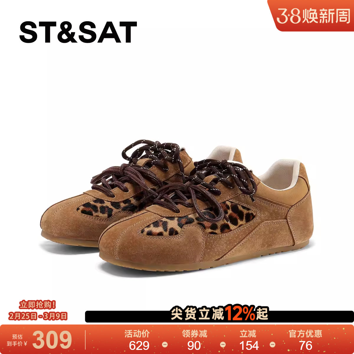 星期六厚底德训鞋女款2025新款秋冬内增高女复古软底豹纹运动鞋直