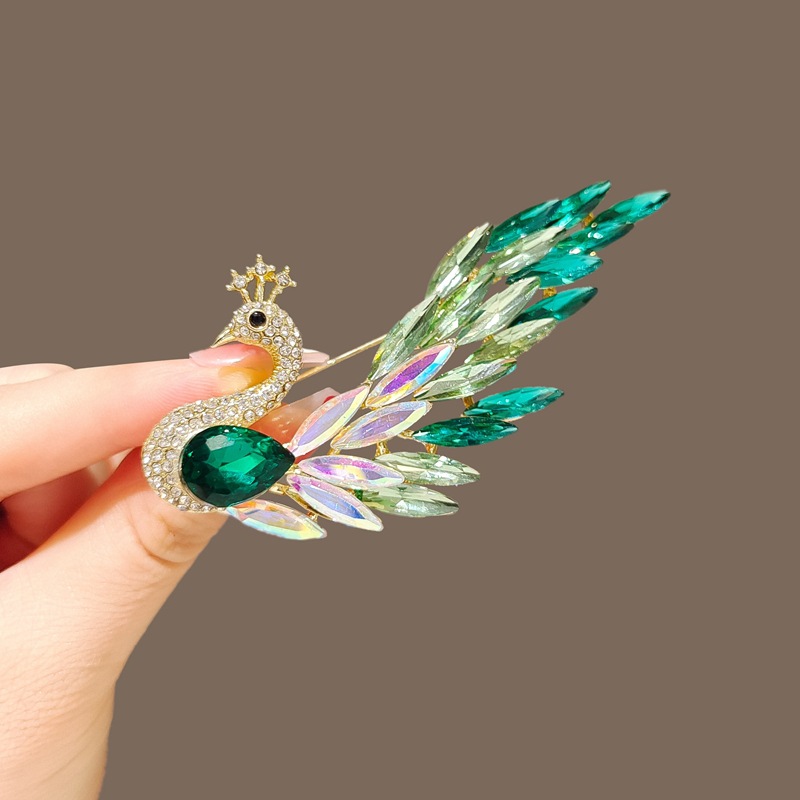轻奢优雅渐变水晶孔雀胸针高档时尚精致别针女士优雅大气胸花配饰
