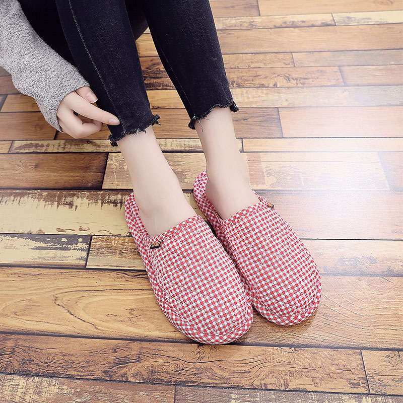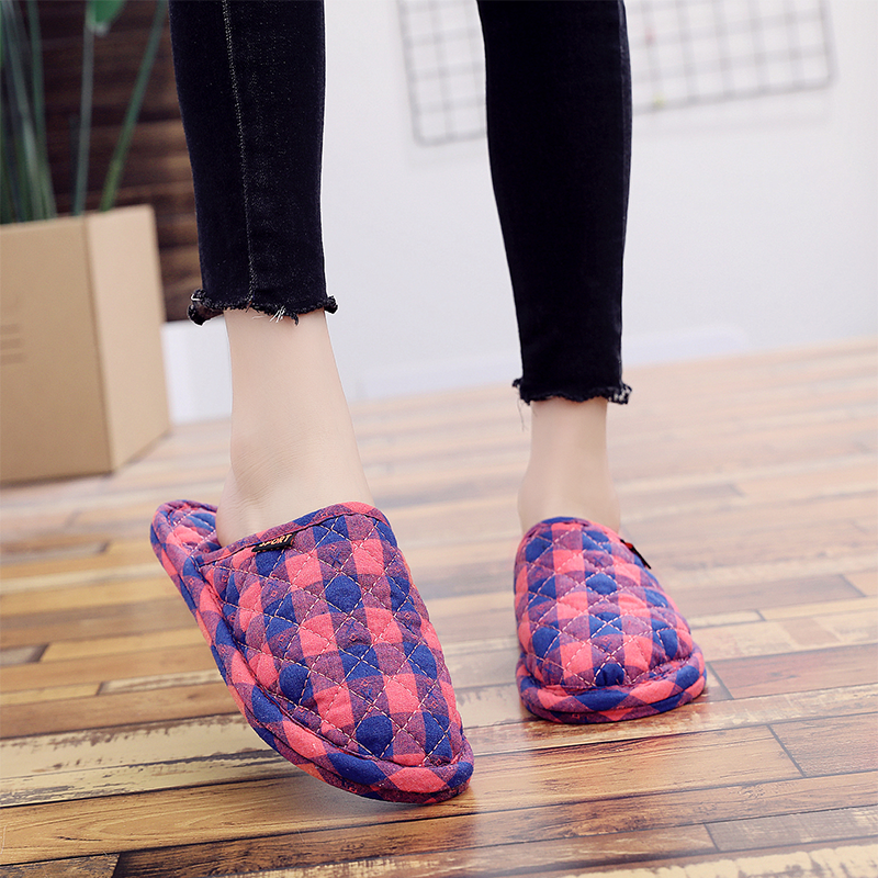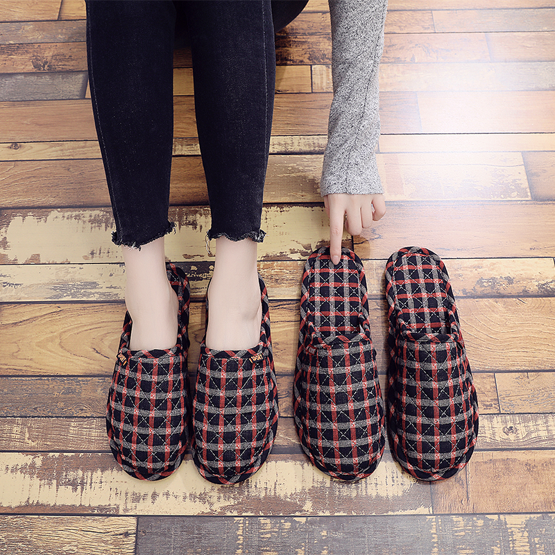 日式新款布底棉拖鞋情侣家居家木地板地砖秋冬季男女静音软底拖鞋