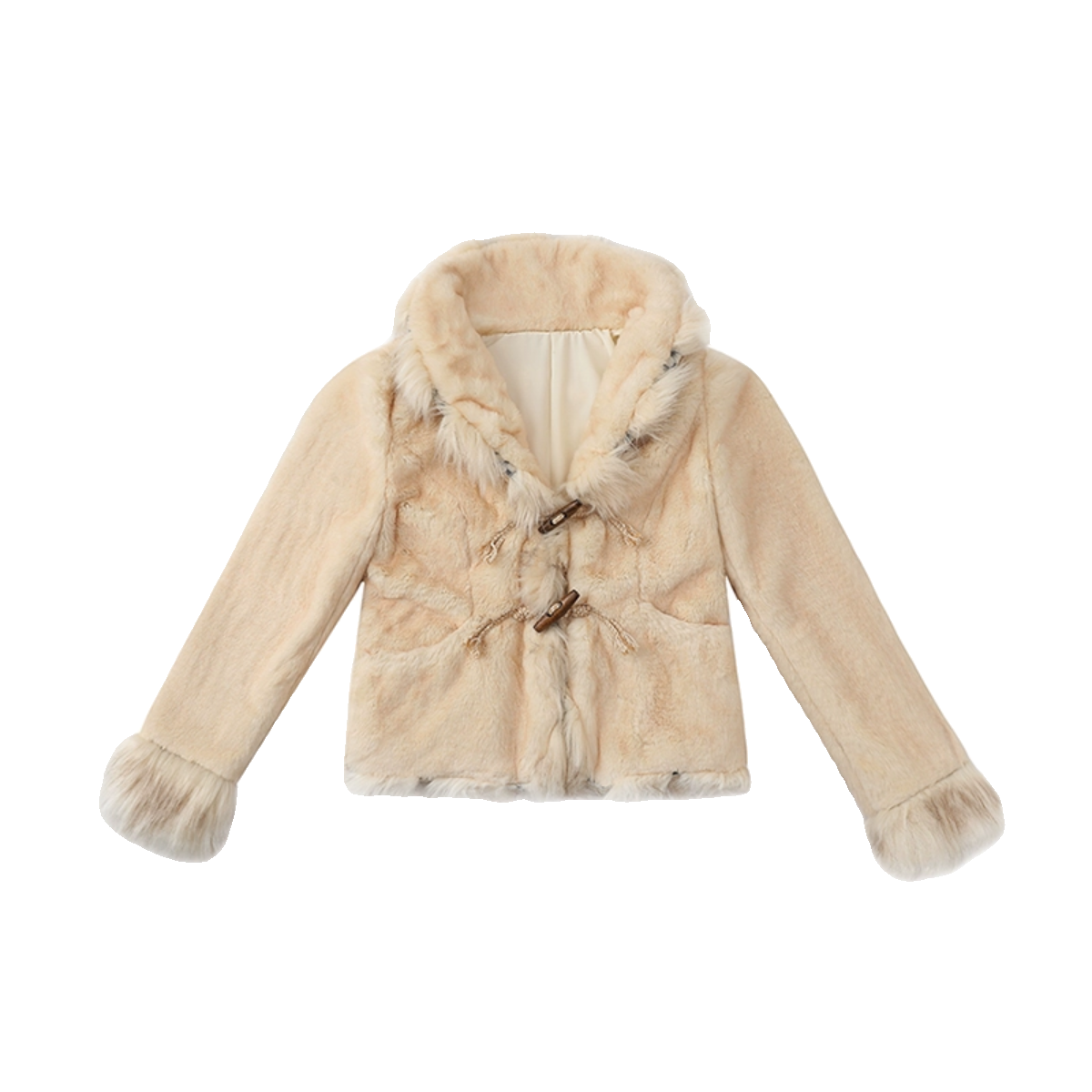 乐饿乐 月历女郎 杏仁渐变焦糖 牛角扣环保皮草外套