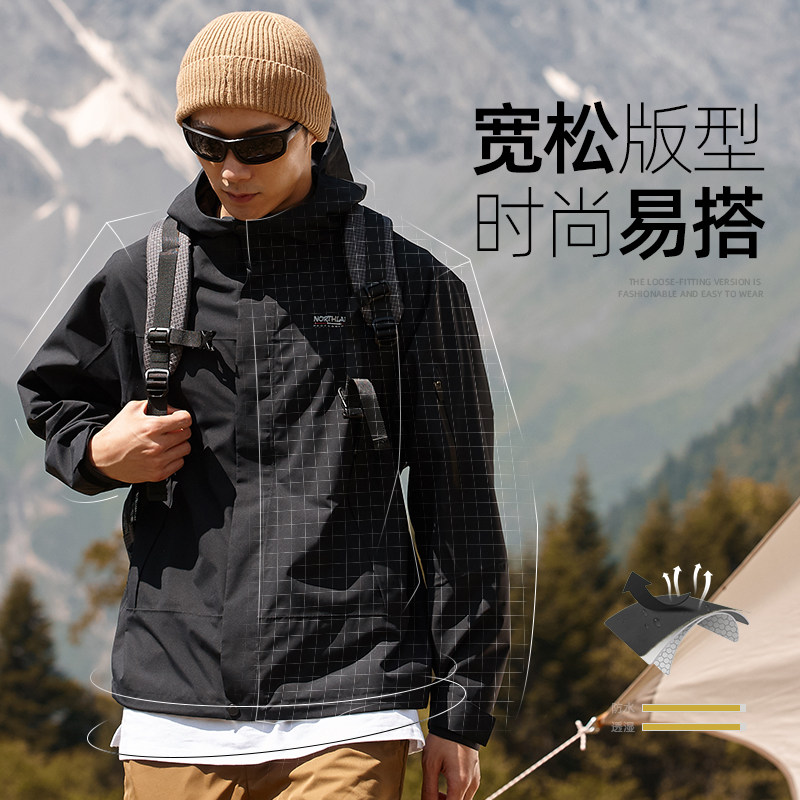 诺诗兰冲锋衣防风防水登山服男户外防泼水外套运动徒步单冲