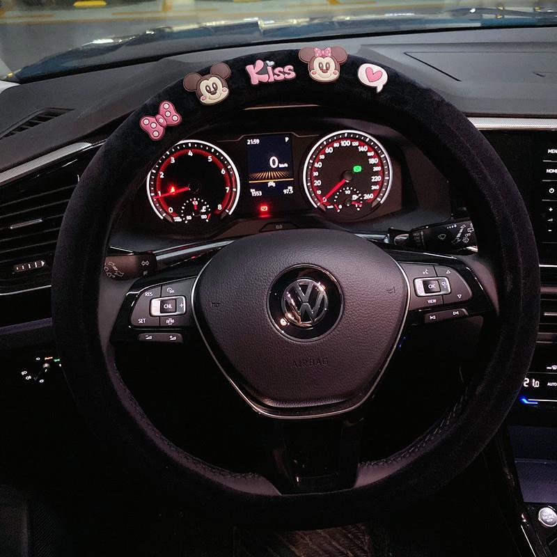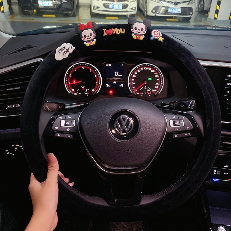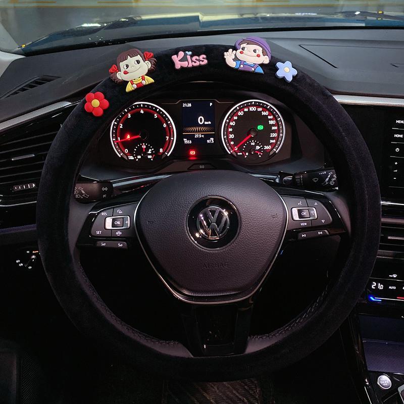 汽车方向盘套女卡通可爱秋冬季短毛绒防滑把套通用型大众奔驰朗逸