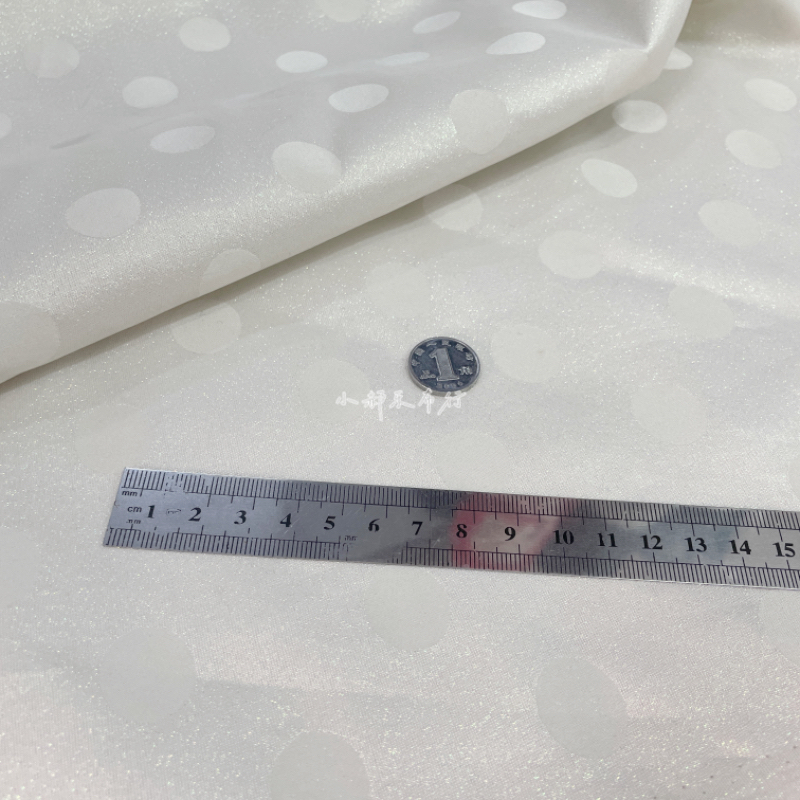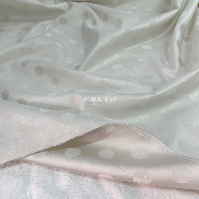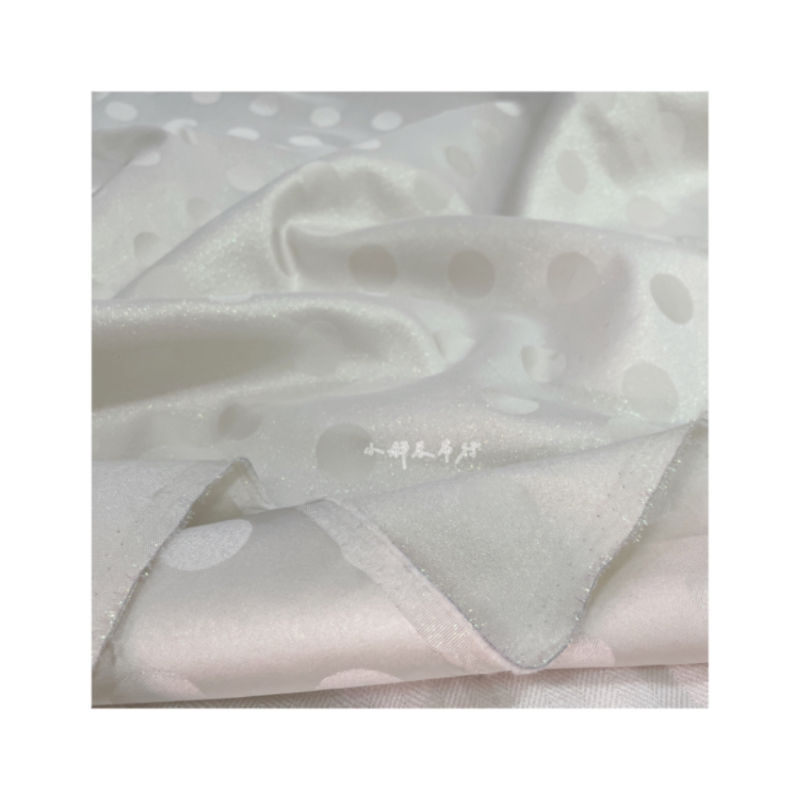 乳白色亮丝织锦圆点波点提花化纤缎布料衬衫连衣裙设计师服装面料
