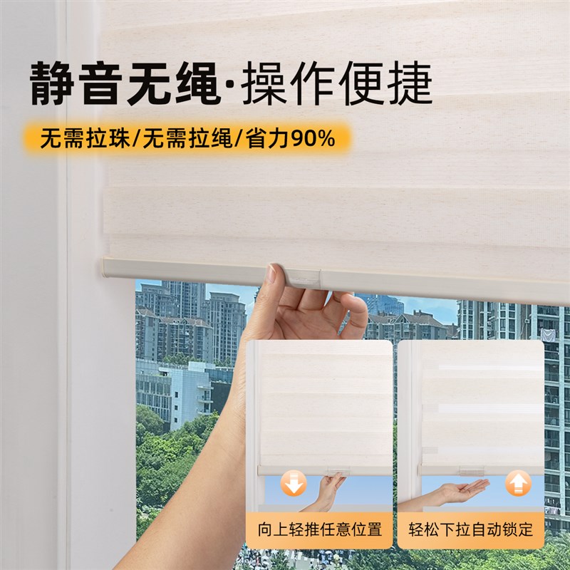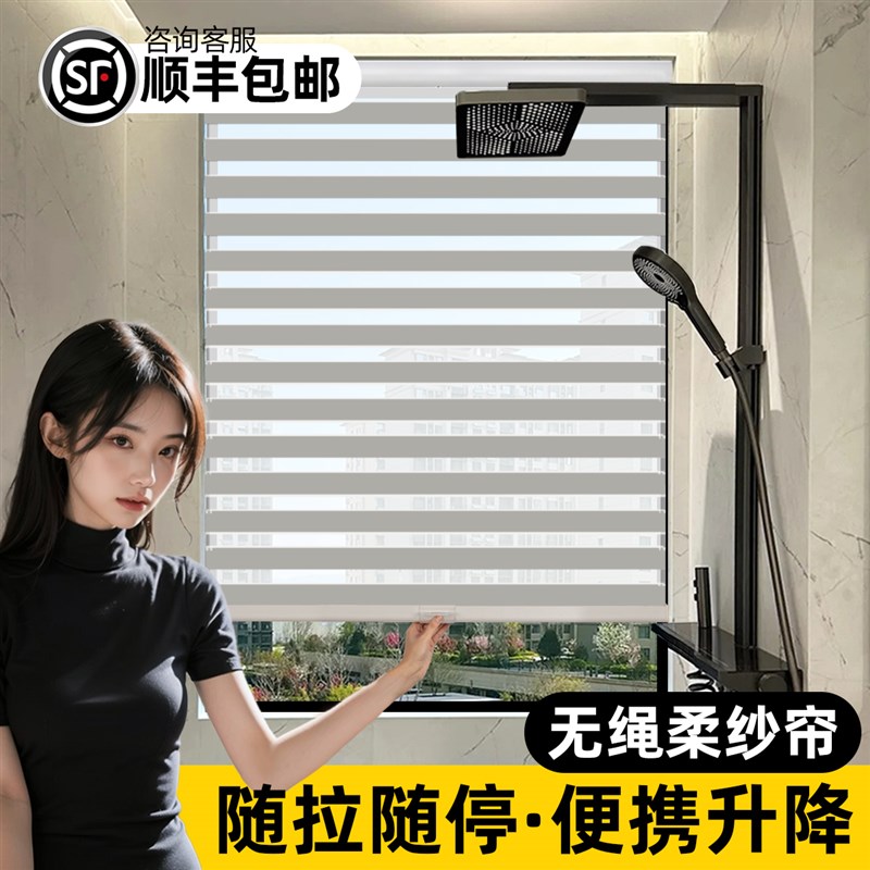 无绳百叶窗帘2025新款免打孔遮光卫生间浴室遮挡办公室升降卷帘