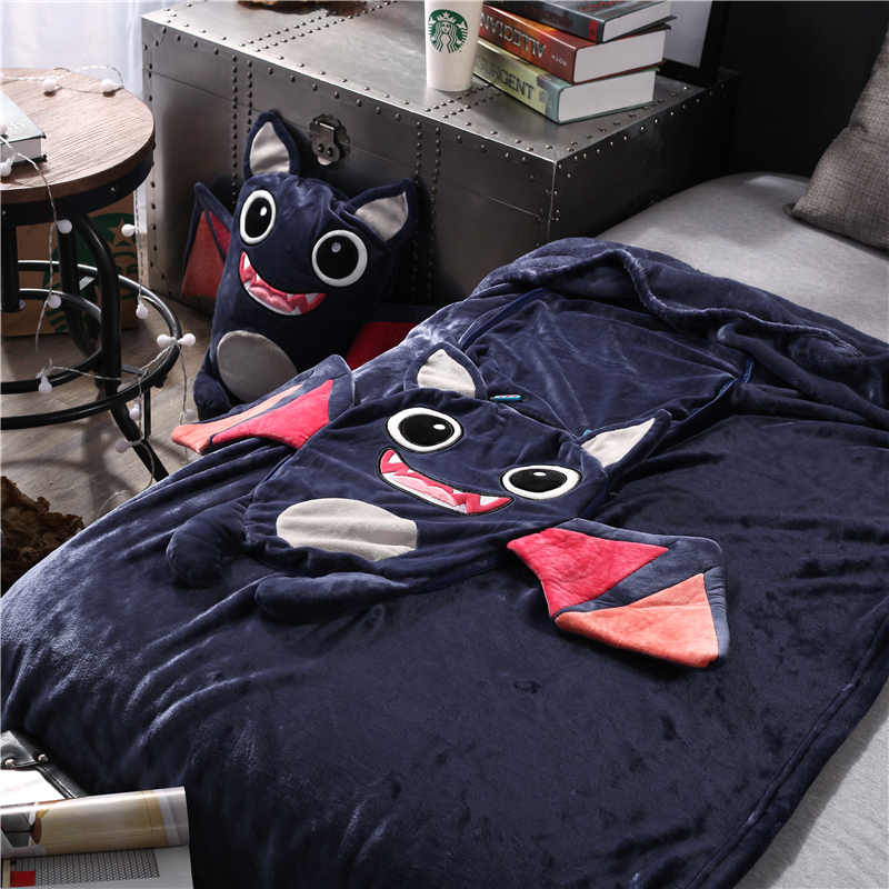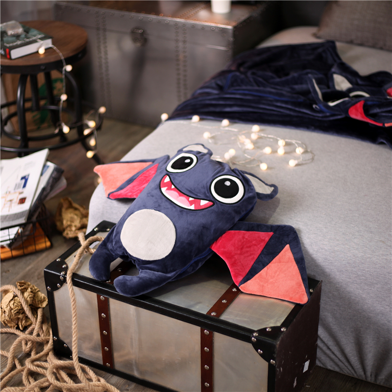 蝙蝠小怪兽两用午休绒毯抱枕被子