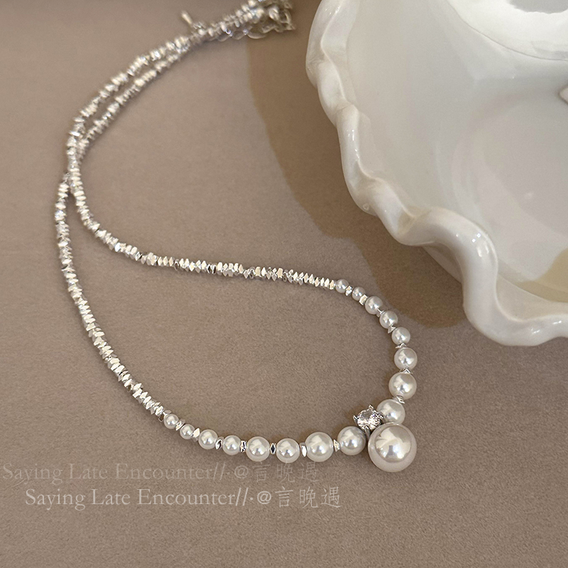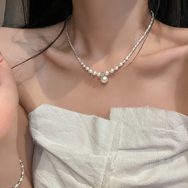 碎银几两~法式珍珠锆石项链女小众独特choke锁骨链复古气质颈链